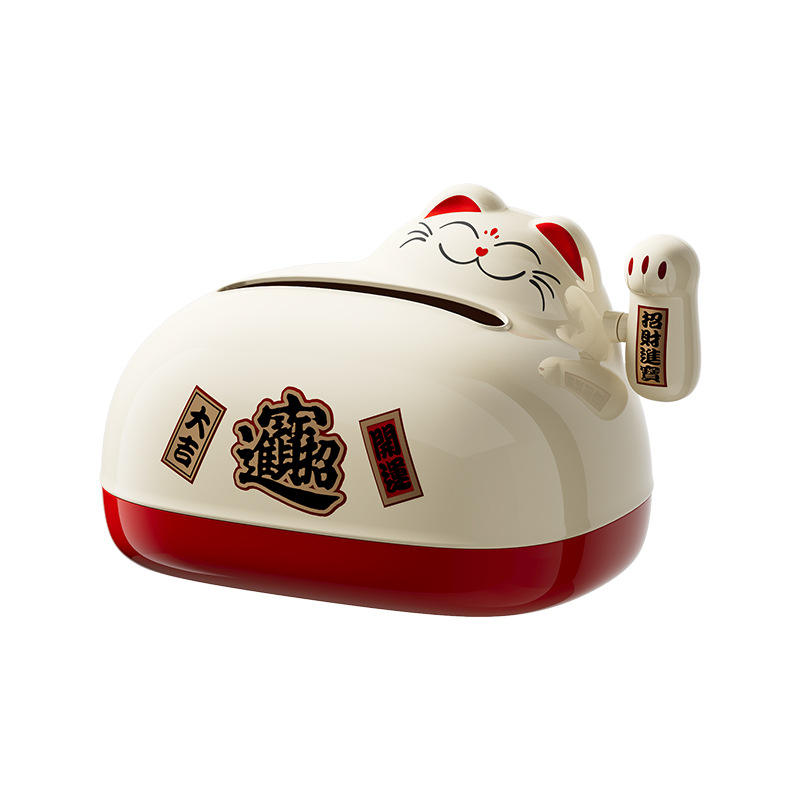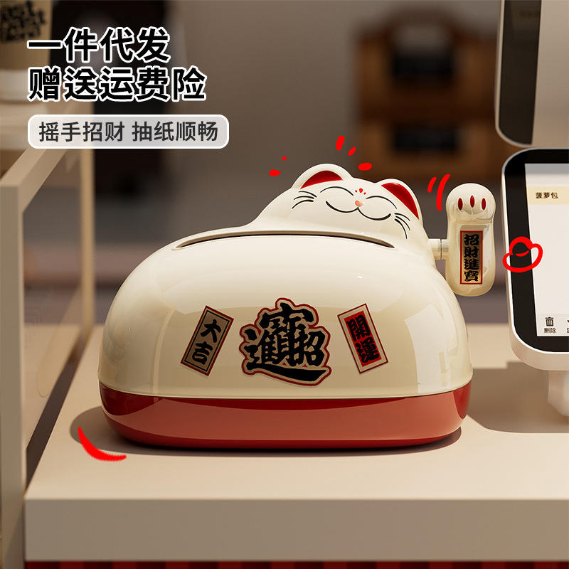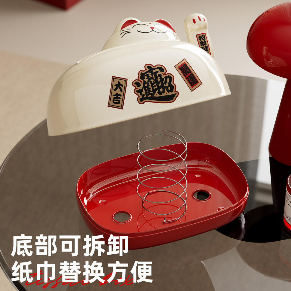 Caja de pañuelos Lucky Cat con manivela manual, color rojo y blanco, para escritorio, sala de estar, oficina, comodidad