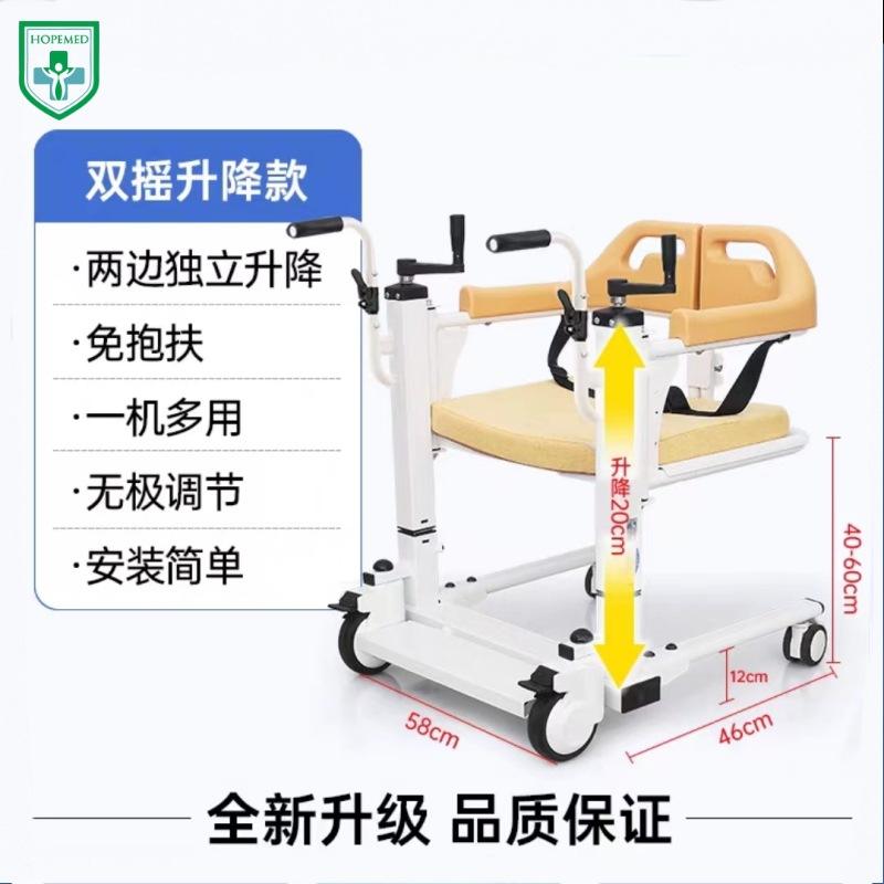 Silla de Transferencia Manual para Pacientes con Inodoro, Capacidad de 240 Libras, Altura Ajustable, para Cuidado en el Hogar de Ancianos y Discapacitados