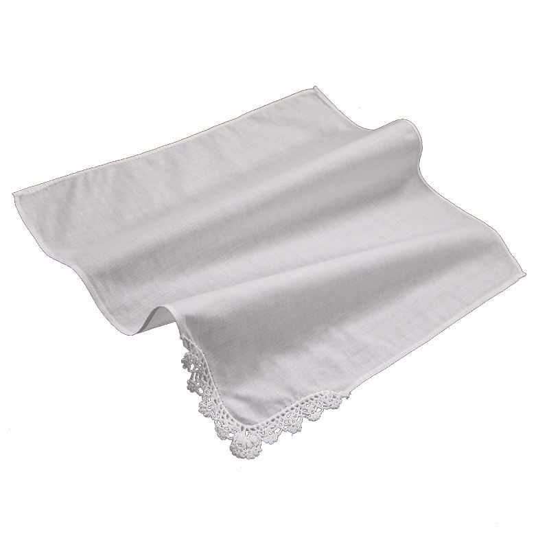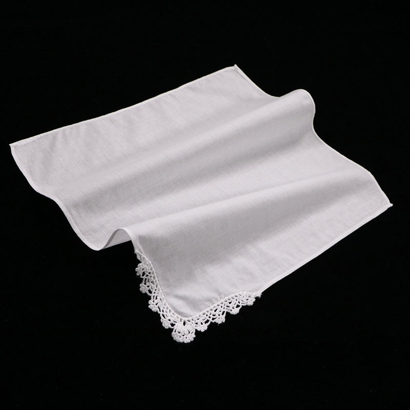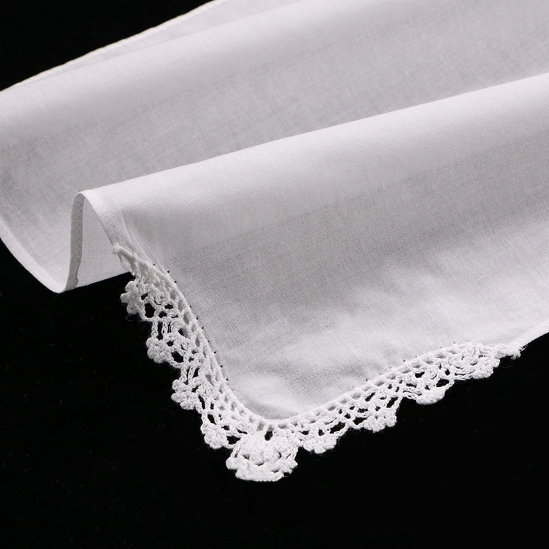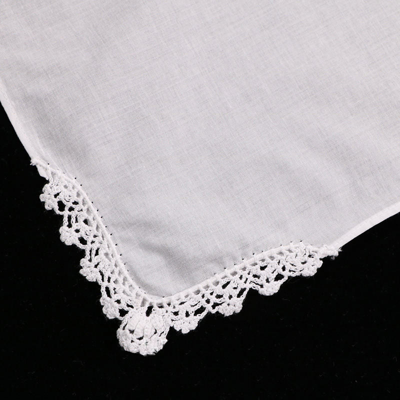 Nombre del producto:Pañuelo de algodón blanco de 12"x12" con borde de encaje, ¡recién llegado!