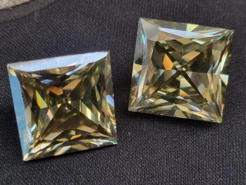 Diamante Moissanite cortado a mano 22*22 MM Color champán claro Corte princesa