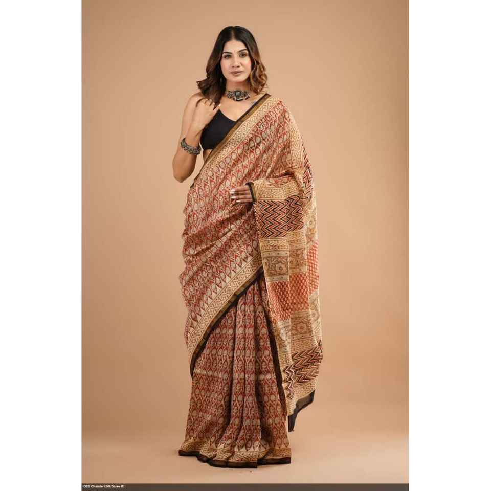 Tela de Seda Chandri con Estampado a Mano, Modelo Banarasi, Estilo Bollywood, Georgette, Modal, Tela Pesada para Bodas y Fiestas