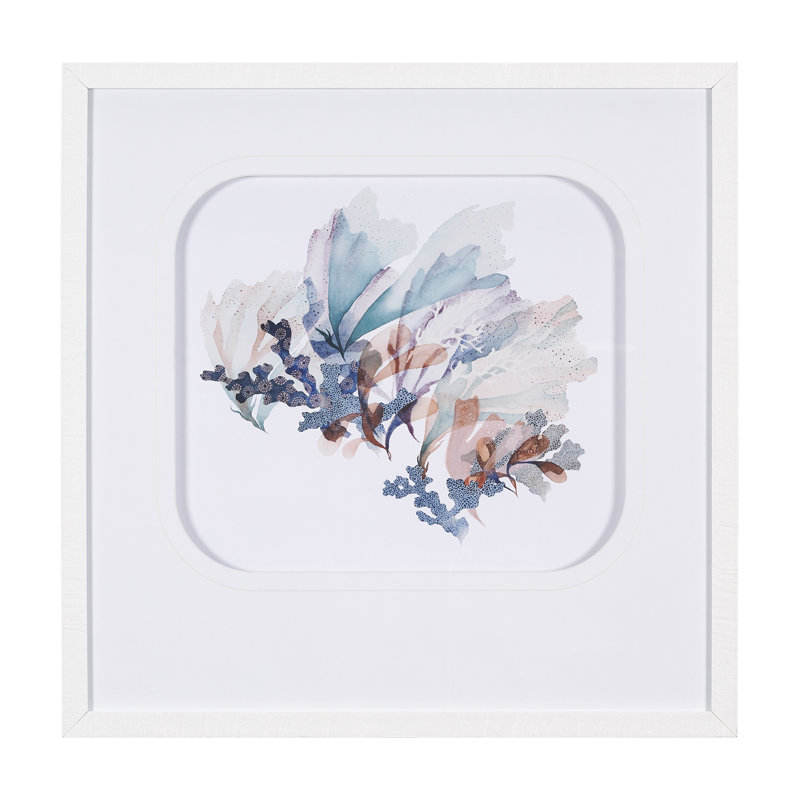 Arte de pared con estampado costero adornado a mano, hierba marina texturizada enmarcada bajo vidrio, estilo elegante y náutico