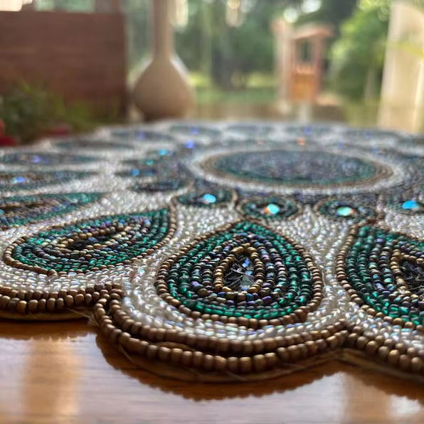 Decoración de mesa elegante con cuentas bordadas a mano de 15 pulgadas
