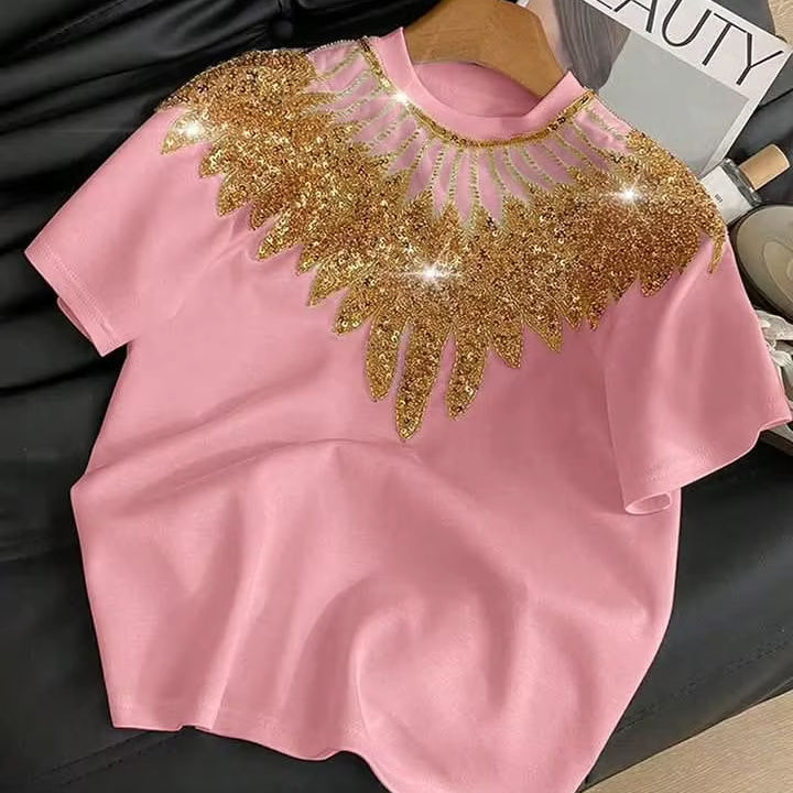 Vestido Camiseta de Manga Corta con Cintura Natural, Color Personalizado y Bordado a Mano, para Damas, Estilo Casual y de Cóctel