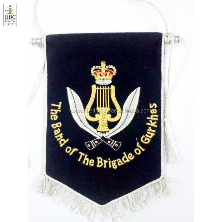 Bandera Bordada a Mano Ecológica para Banda de Marcha con Varilla para Colgar, Bandera Bordada Personalizada con Flecos de Hilo Dorado, Regalos