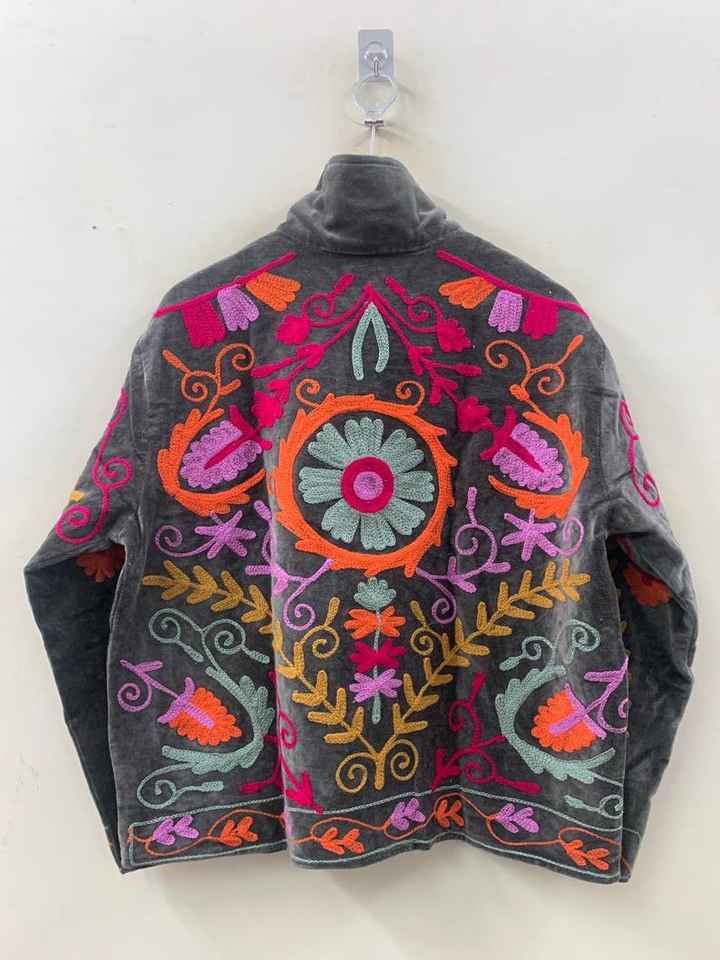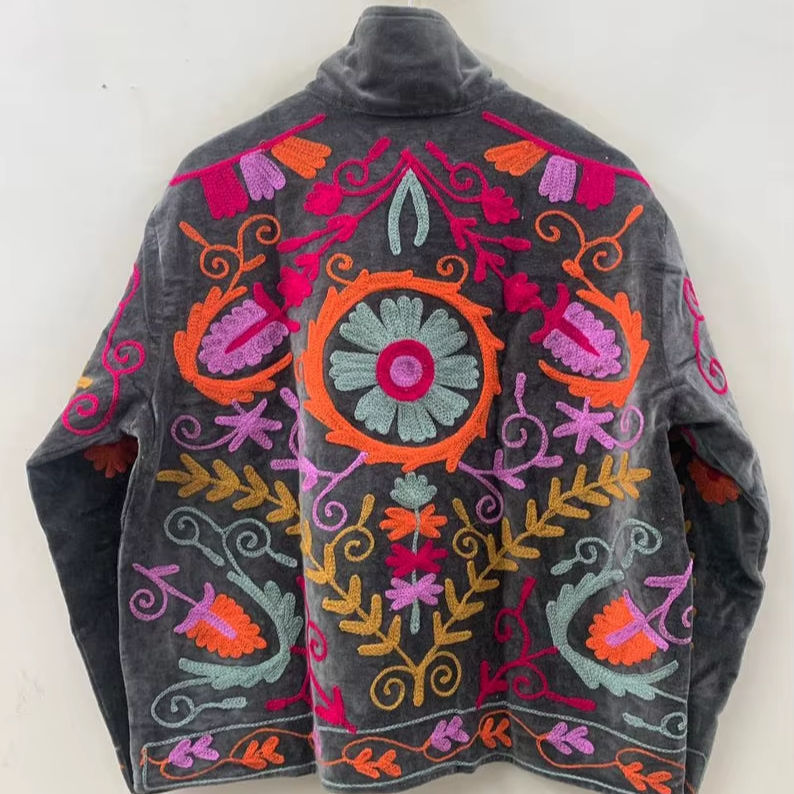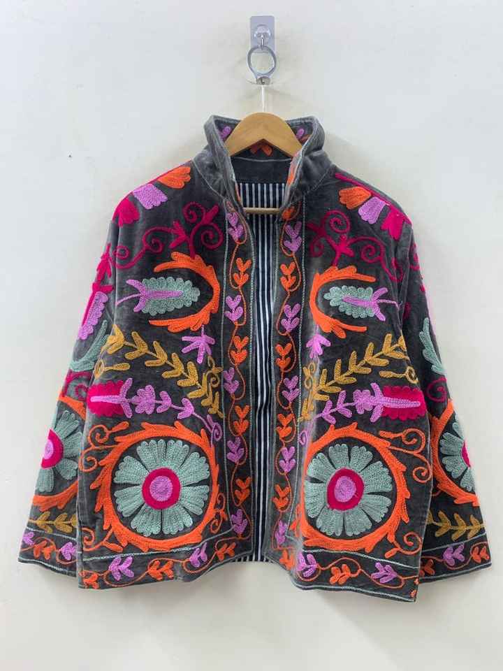 Chaqueta Corta de Terciopelo con Bordado Floral a Mano, Chaqueta de Fiesta, Prenda Exterior Artística, Unisex, Regalo para Esposa