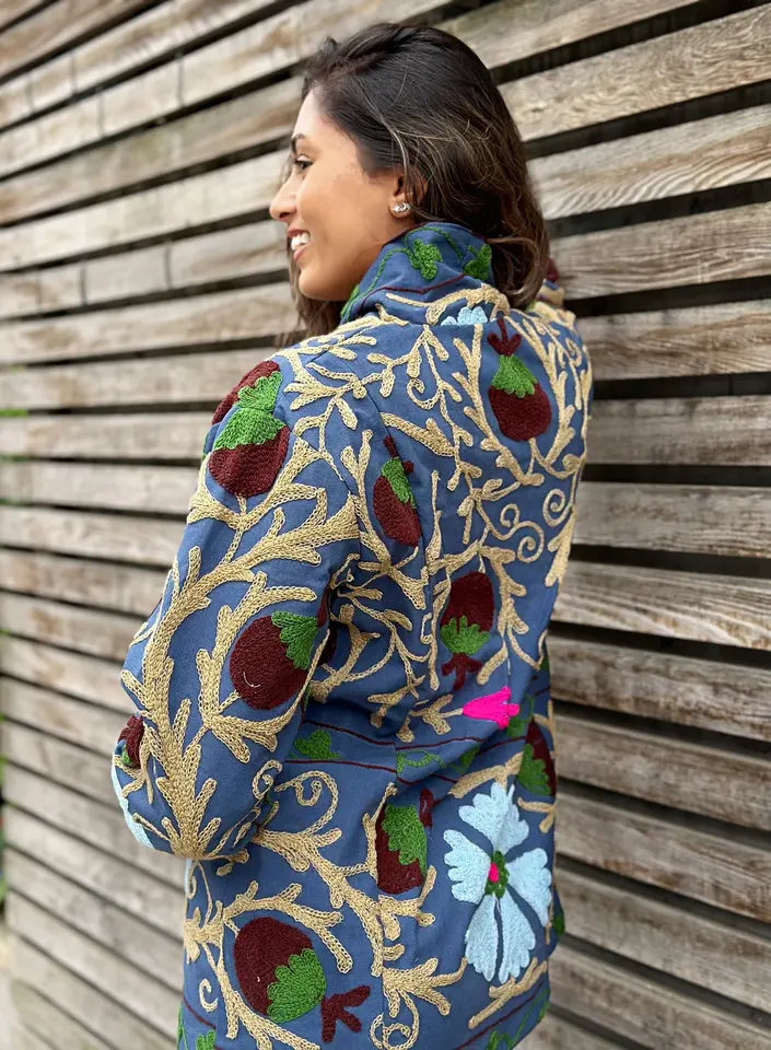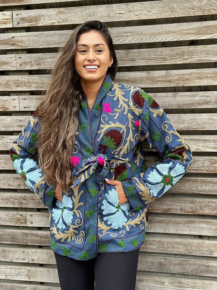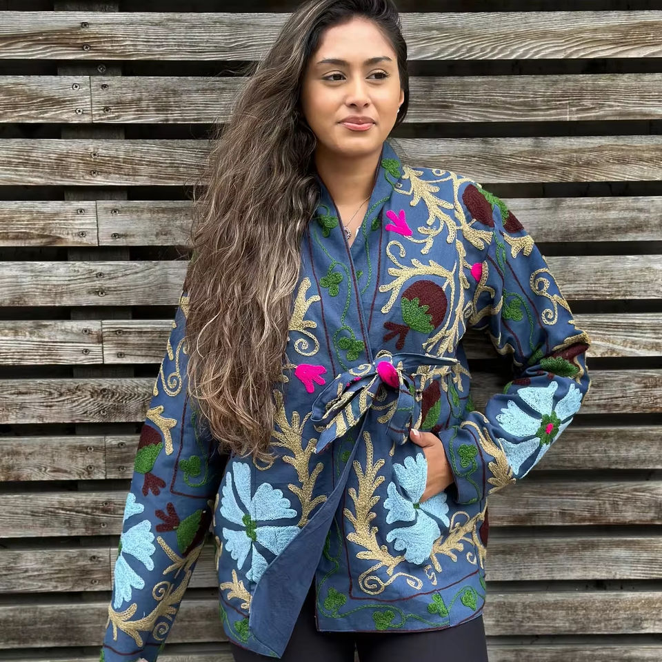 Chaqueta larga Suzani bordada a mano para mujer Primavera Bohemia Boho Gypsy Crewel Festival Regalo especial
