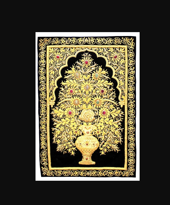 Zari bordado colgante de pared bordado a mano Zari resina flores decoración del hogar regalo Función de jarrón de pared