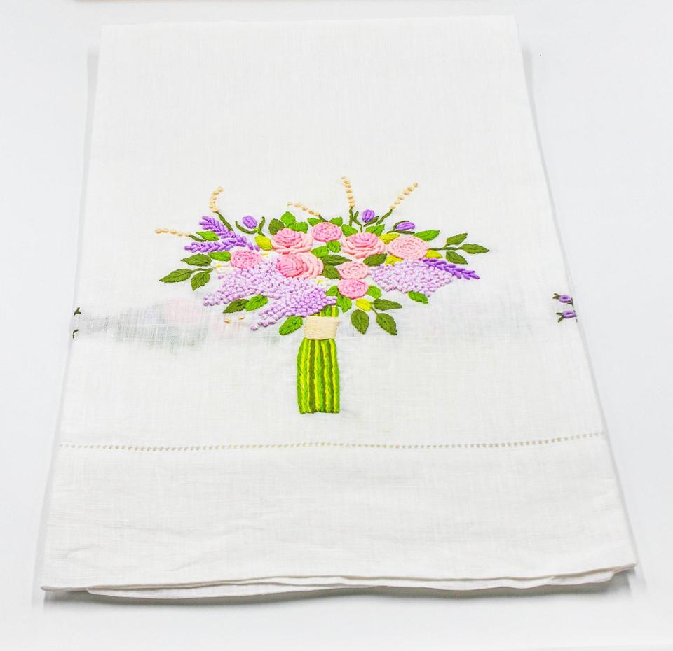 Best seller linen towel 100% Linen, 100% cotton, cotton/linen, polyester or cotton canvas Linen towel measures Constructed from linen Beautiful hand-knotted French knot After ironed, items are put into plastic bags then into carton boxes or according to customer's requirement