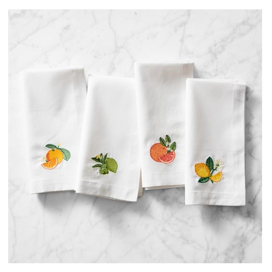 Servilletas bordadas a mano, servilletas con diseños de limón y naranja, 100% algodón