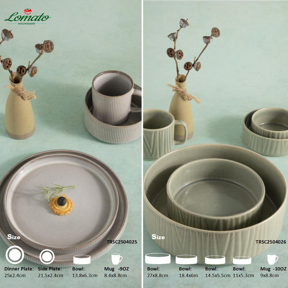 Vajilla de cerámica de estilo bohemio moderno acabada a mano, juegos de vajilla reutilizables sin BPA, flujo de esmalte reactivo para cocina casera