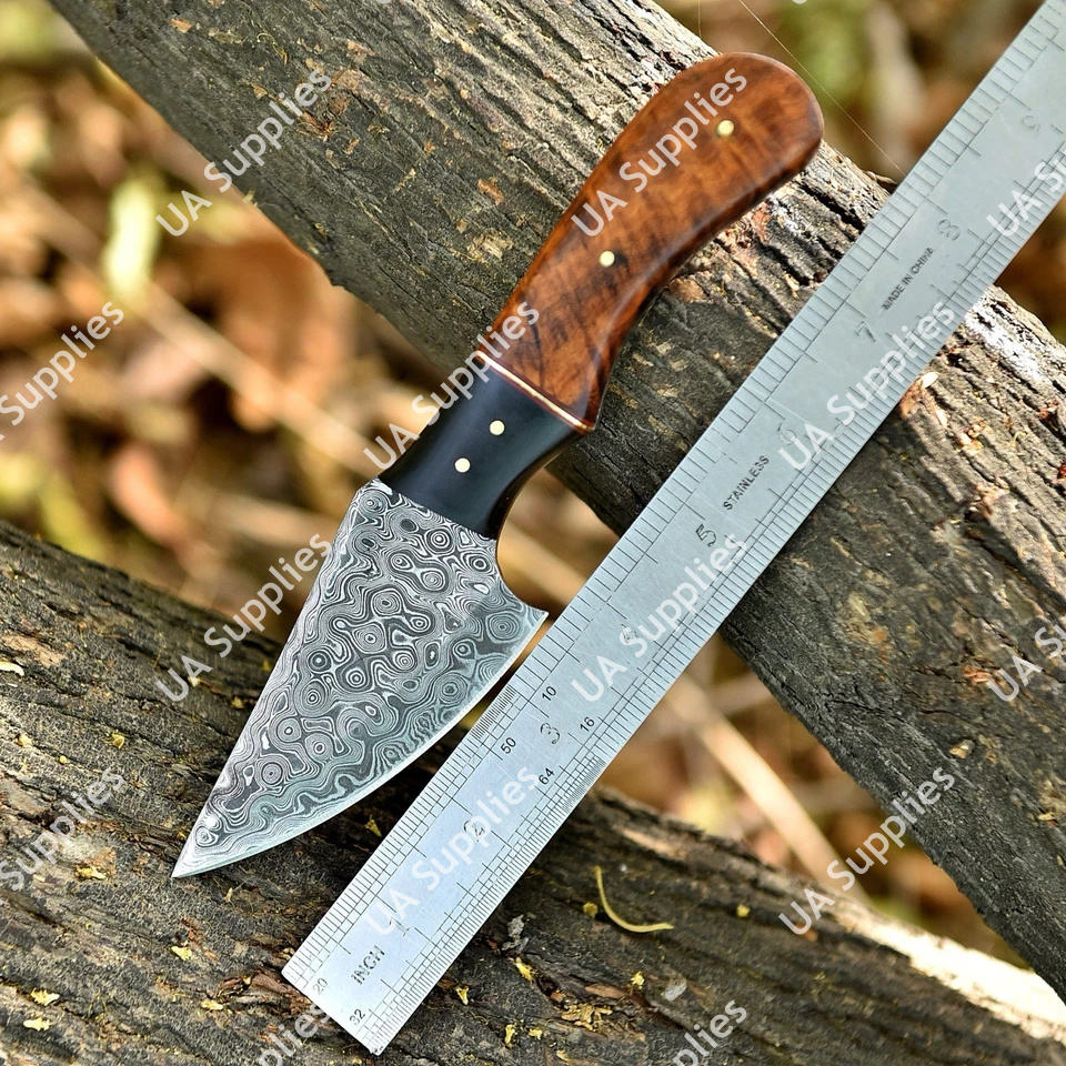 Cuchillo de Supervivencia Táctico de 8 Pulgadas, Forjado a Mano, Hoja de Acero de Damasco de 3 Pulgadas, Afilada como una Navaja, Estilo Gota de Lluvia, Mango de Madera, para Caza, Camping y Uso Diario