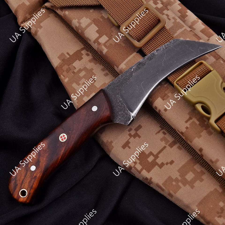 Cuchillo de Supervivencia para Exteriores, Forjado a Mano en Acero al Carbono, Afilado como una Navaja, Hoja Fija Tipo Pico de Halcón, Madera de Palisandro, para Camping y Caza, OEM Industrial