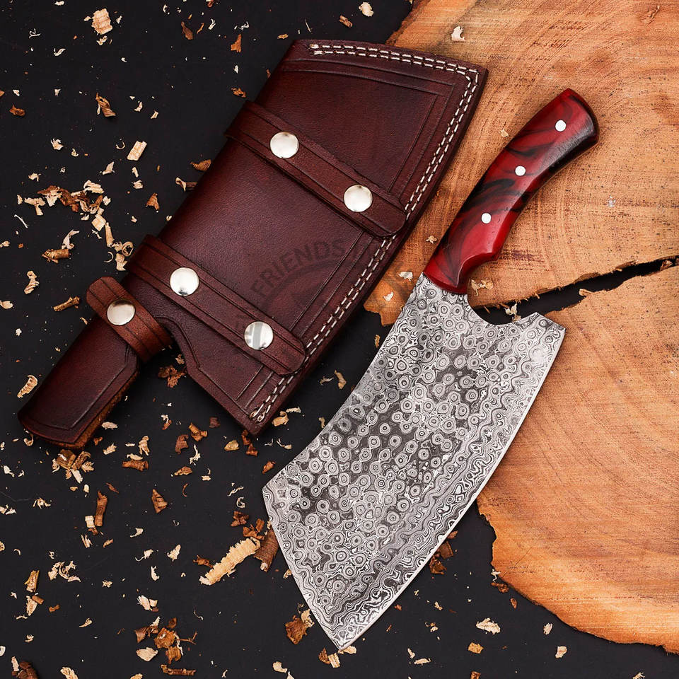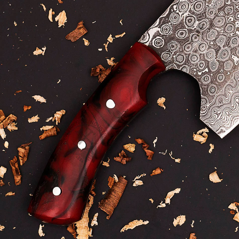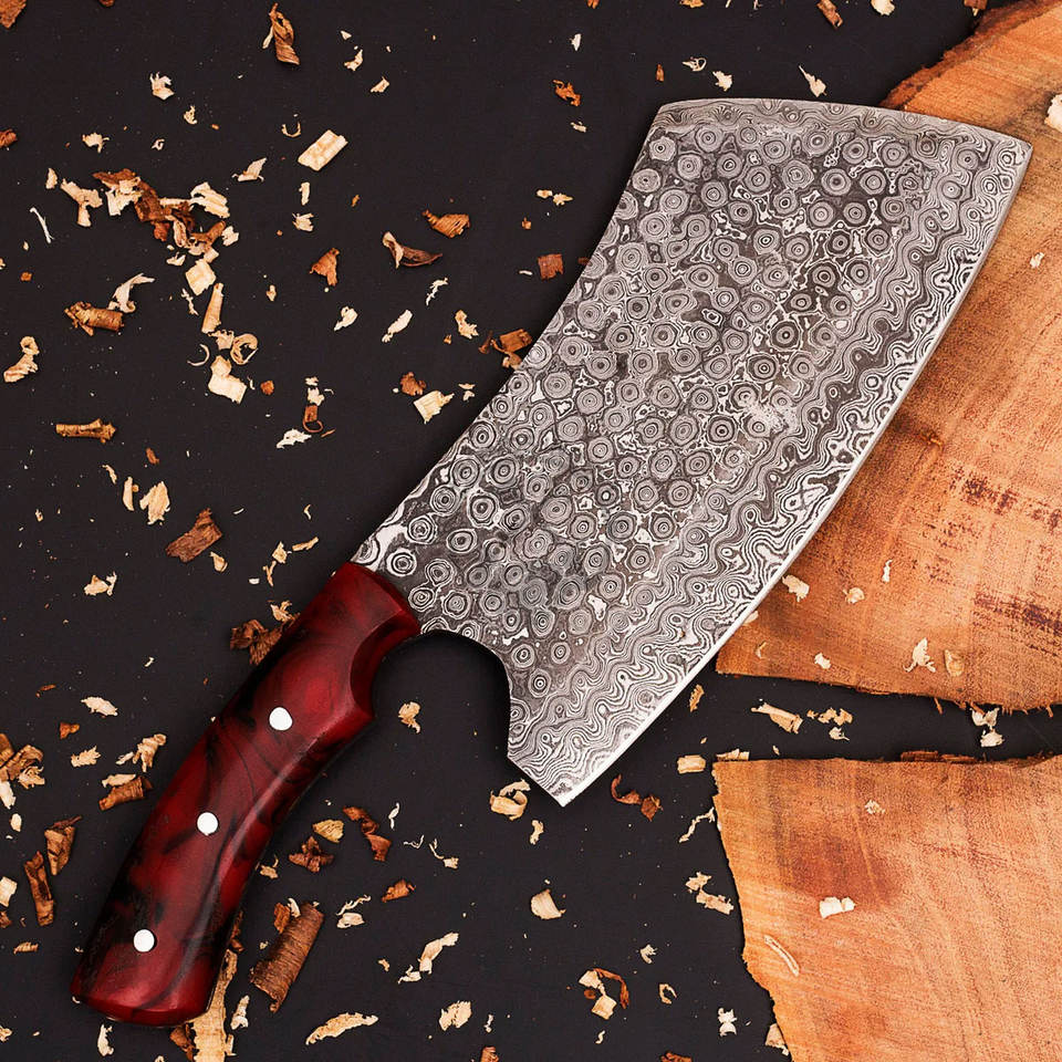 Cuchillo de cocina tipo hachuela de acero de Damasco hecho a mano