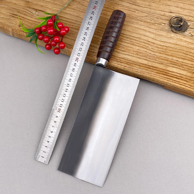 Cuchillo de Chef Chino Forjado a Mano, de Acero al Carbono Rústico, con Mango de Madera Natural para Picar y Rebanar con Precisión