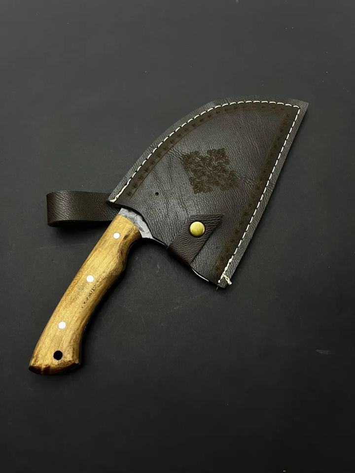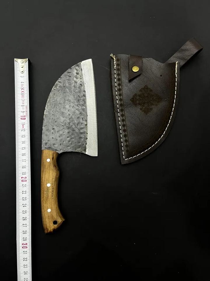 Cuchillo Mini Cleaver Forjado a Mano con Funda de Cuero, Cuchillo de Carnicero de Acero con Alto Contenido de Carbono, Cuchillo Compacto para Cortar Carne y Verduras