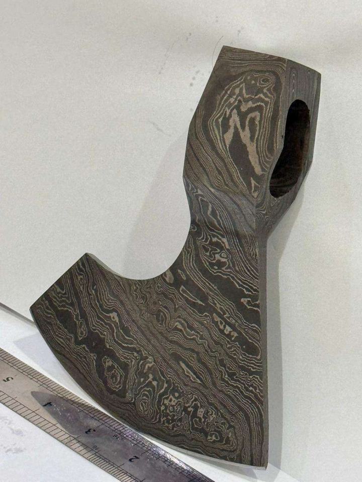 Hacha de Acero Forjado a Mano con Patrón Soldado, Cuchilla de Hacha Estilo Damasco Hecha a Medida, Herramienta para Acampar y Bushcraft al Aire Libre