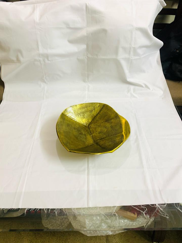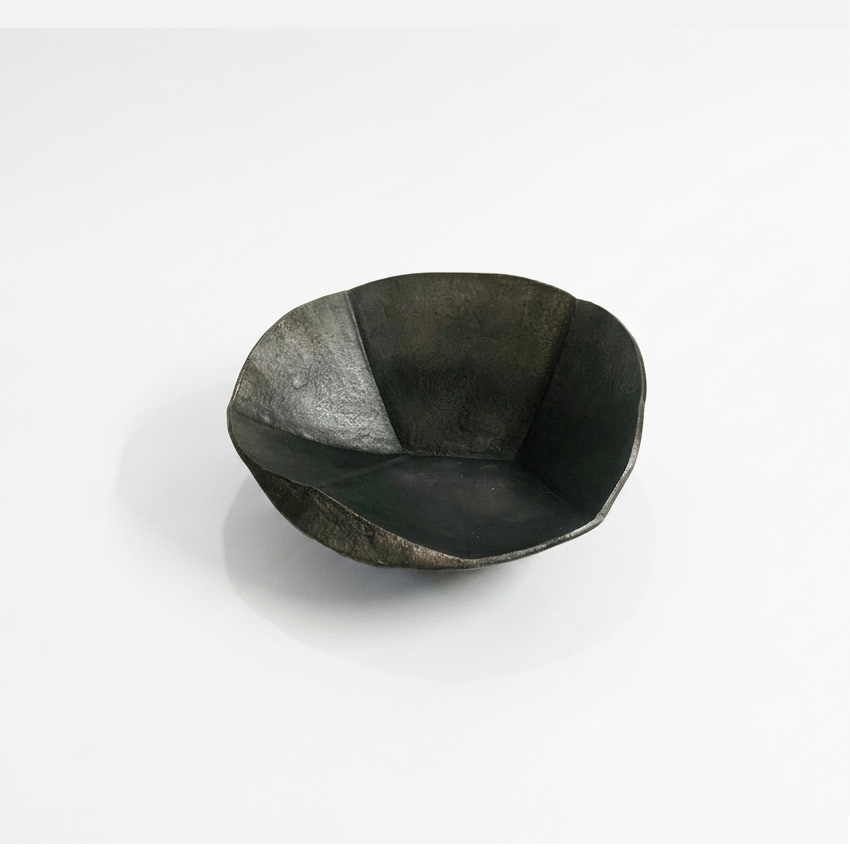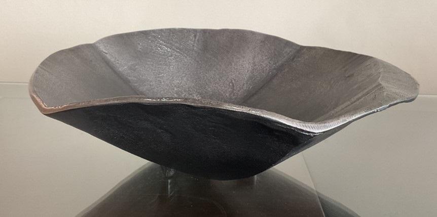 Cuenco Decorativo Rústico de Metal Forjado a Mano, Cuenco Artesanal Facetado en Gris Pizarra, Escultura Metálica Abstracta de Lujo para Mesa