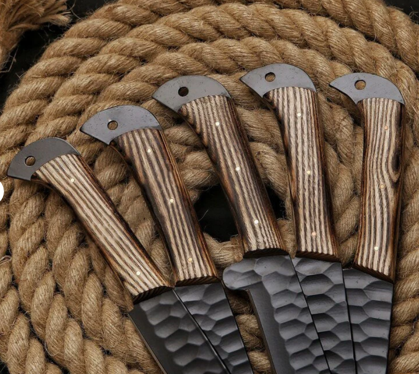 Juego de Chef de acero forjado a mano 5PCS Cuchillos de cocina de acero al carbono hechos a mano que incluyen cuchillo de cocina y cuchillos regulares