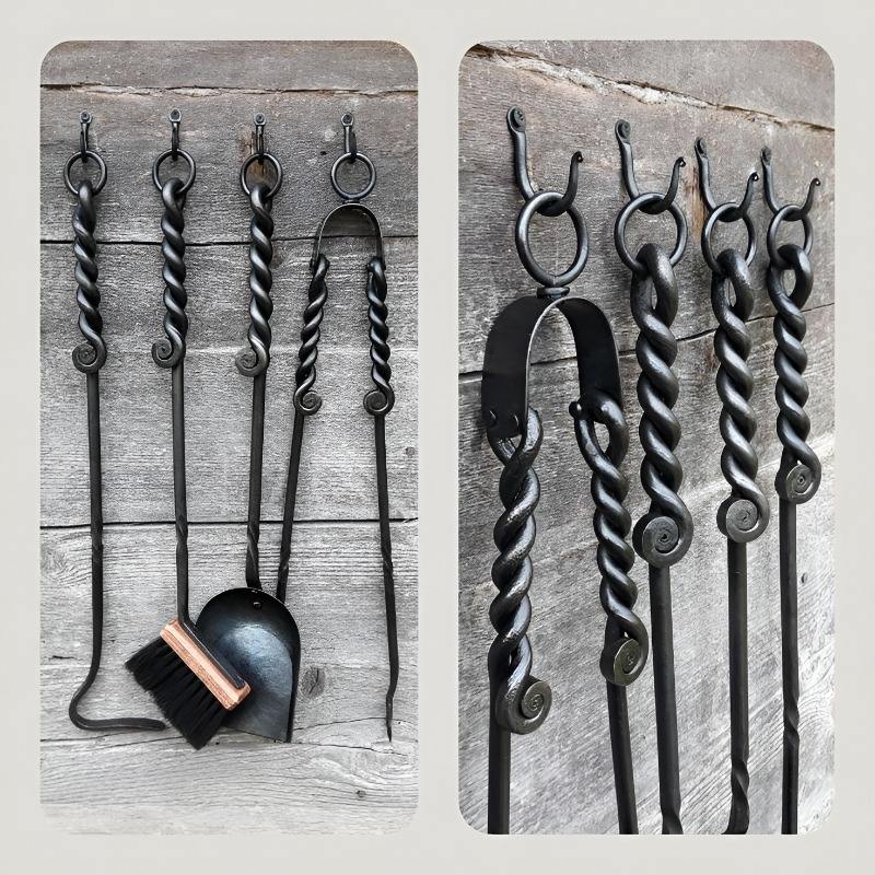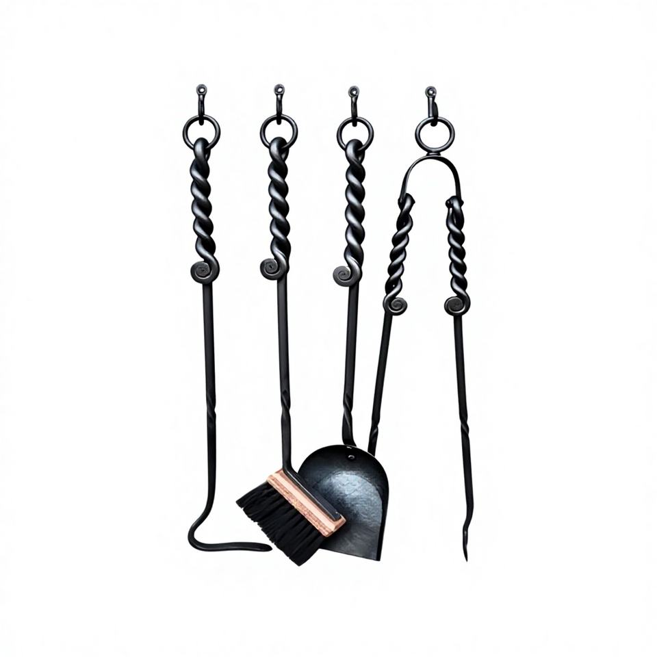 Juego de herramientas para chimenea forjadas a mano, de alta resistencia, juego de metal para fuego con pica, pala, pinzas, cepillo y soporte para interior y exterior