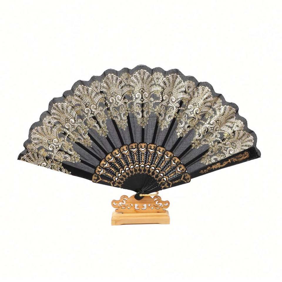 Abanico Plegable de Plástico con Polvo Dorado, Estilo Chino, para Arte, Manualidades, Regalo, Baile, Boda, Fiesta