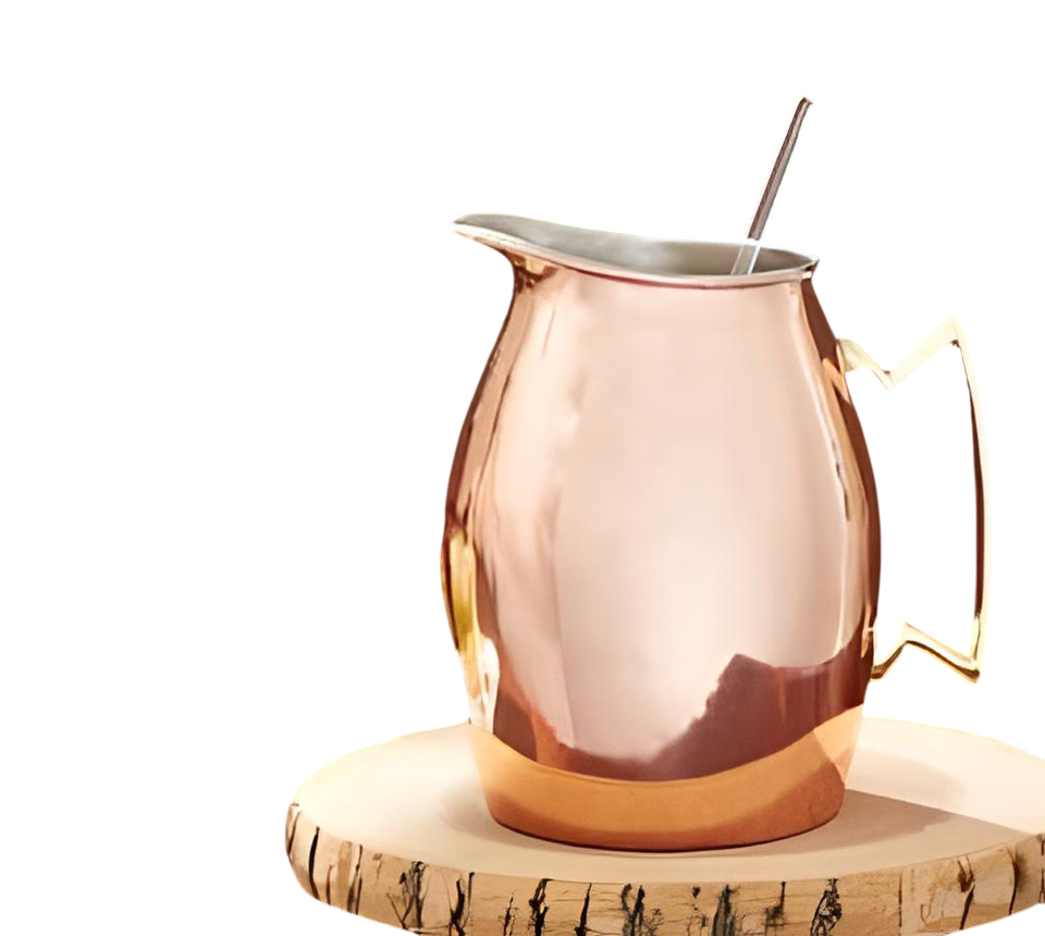 Jarra de Agua de Cobre Martillada a Mano con Asa de Latón | Jarra de Servir con Acabado Vintage para Uso en el Hogar, Hoteles y Restaurantes