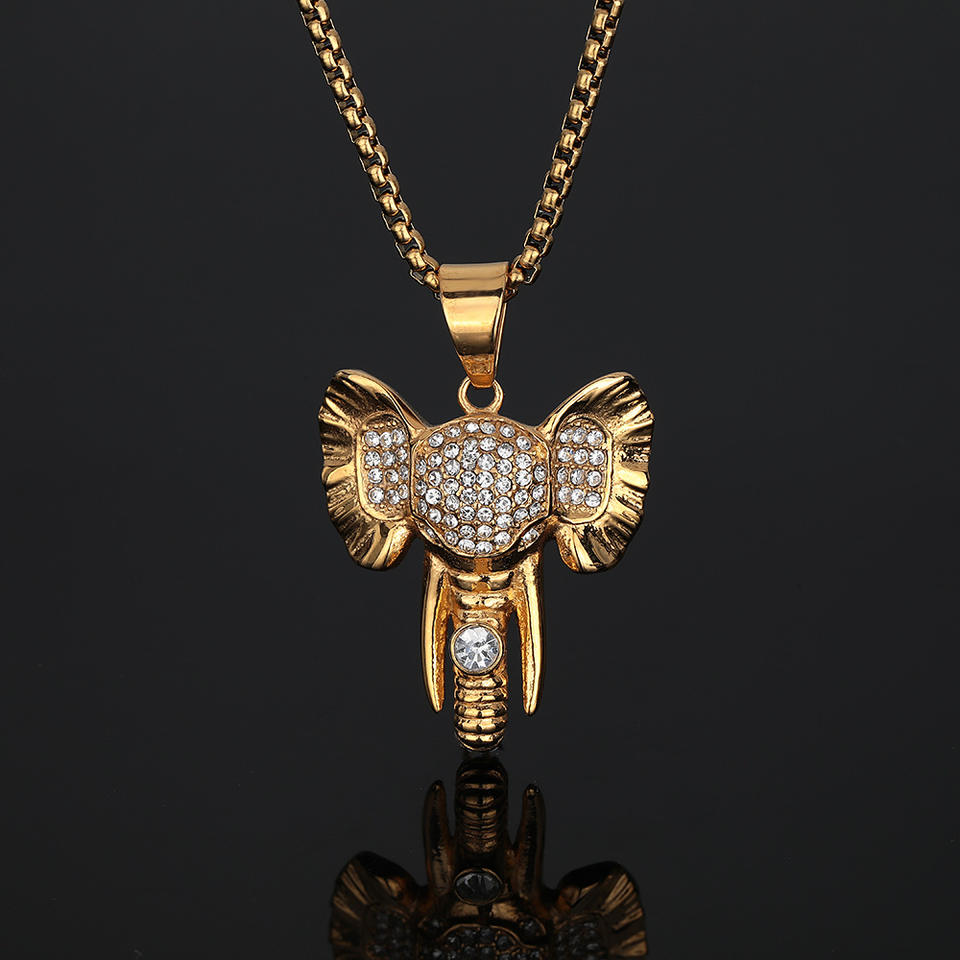 Mano Hip Hop Animal elefante no deslustre Zirconia cúbica no deslustre impermeable Acero inoxidable joyería de moda colgantes hombre