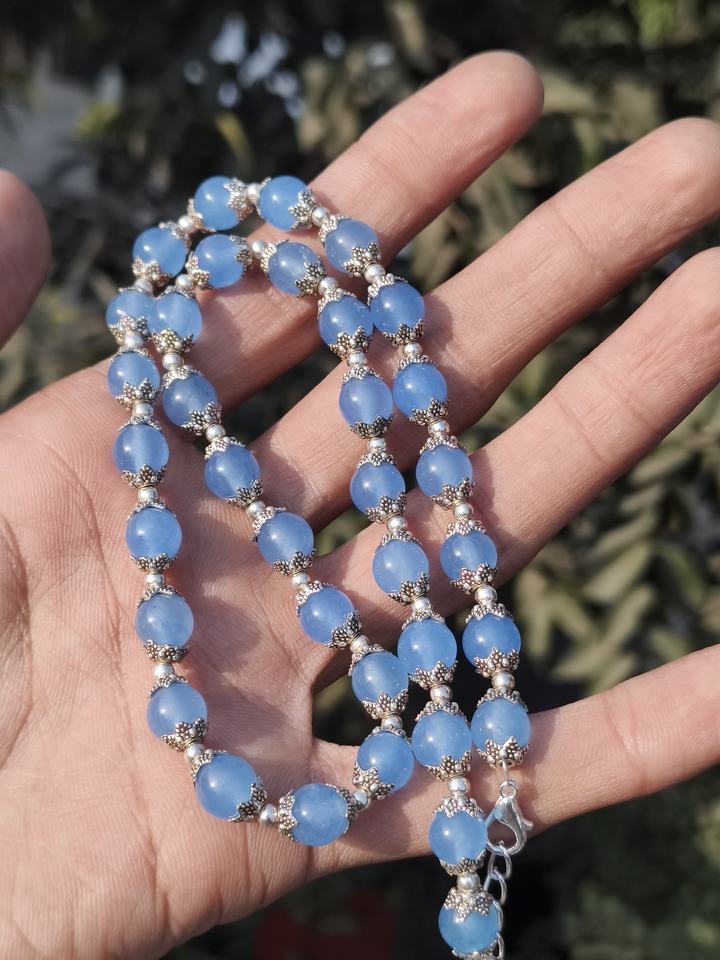Collar de Piedras Preciosas de Calcedonia Azul Lago Anudado a Mano, Collares Finos con Cuentas