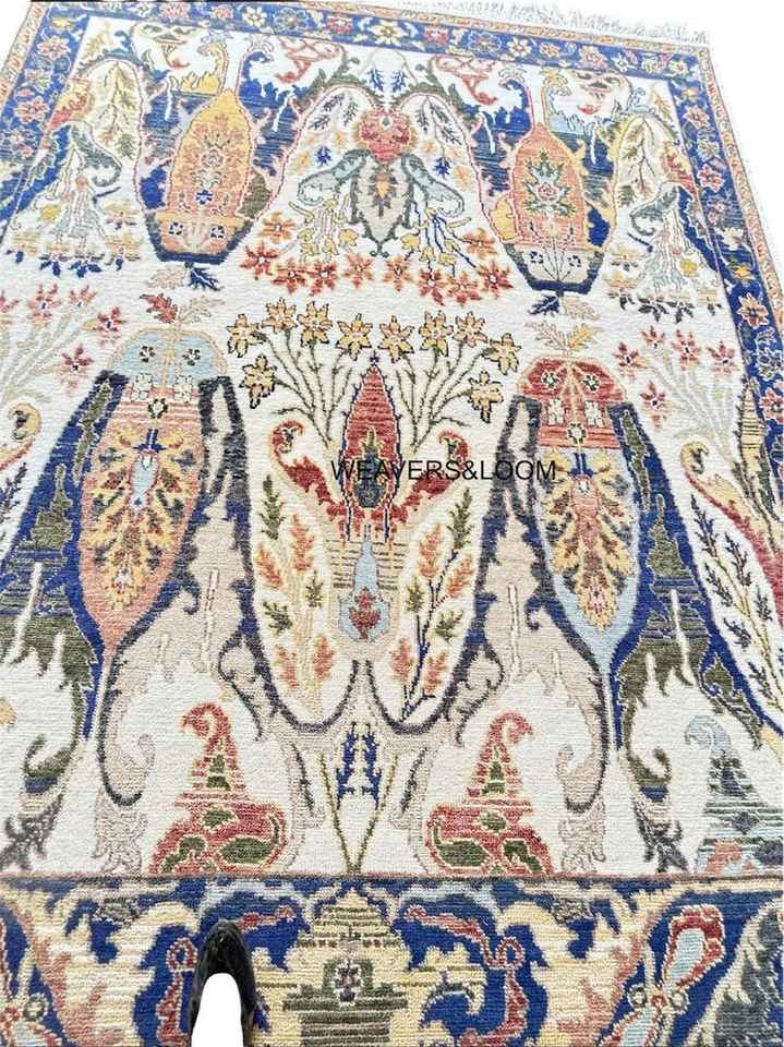 Alfombra Oushak Anudada a Mano, Alfombra de Lana Turca, Diseño Floral Oriental, Estilo Vintage, Decoración para Sala de Estar