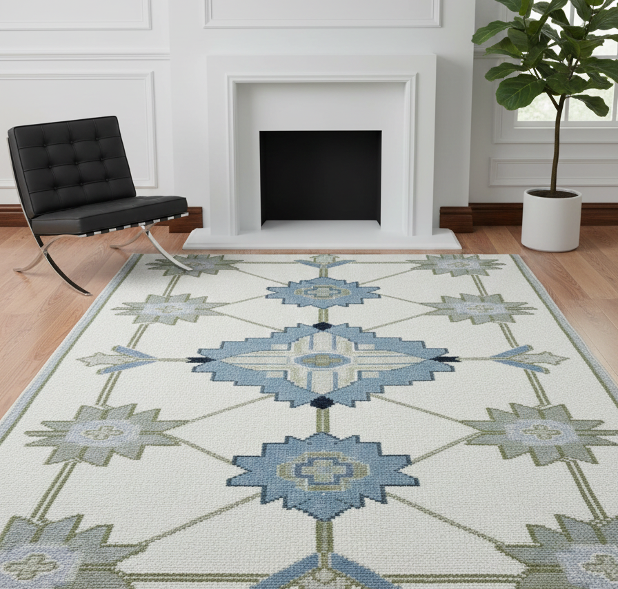 Alfombra de Lana Oushak Anudada a Mano - Alfombra de Estilo Vintage para Sala de Estar y Dormitorio