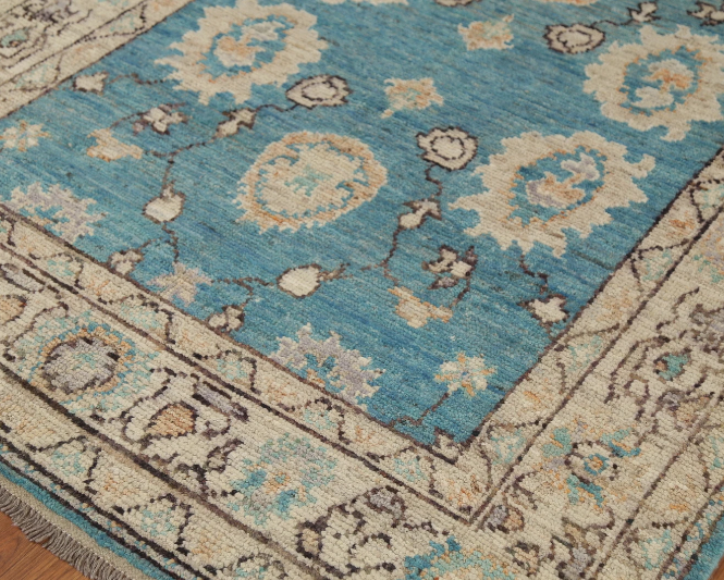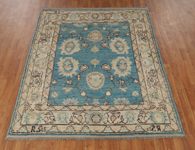 Alfombra de lana Oushak anudada a mano, alfombra Oriental azul Vintage con patrón de medallón para sala de estar, dormitorio y decoración del hogar