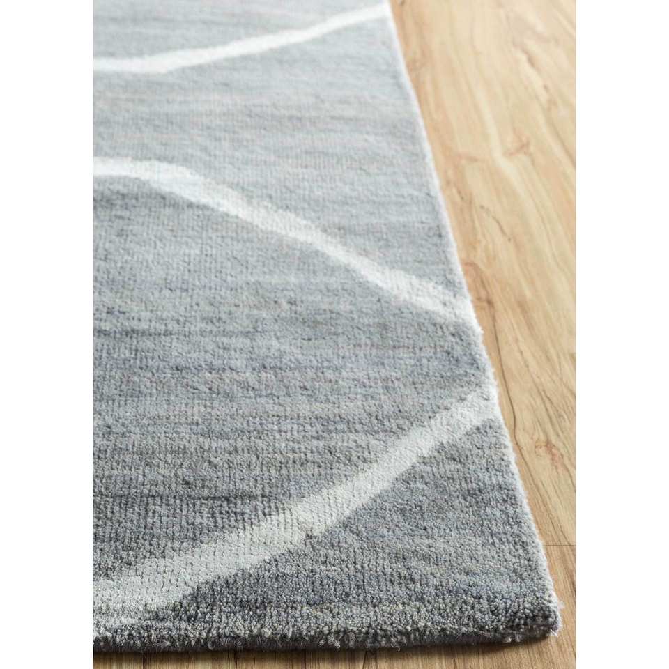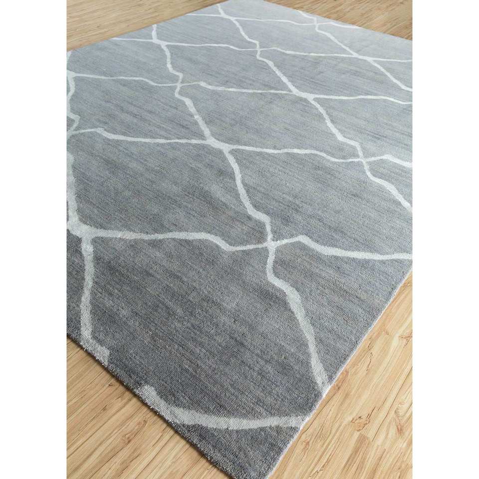 Alfombra de Lana y Seda de Bambú Anudada a Mano, Color Gris Clan y Negro, 10 mm de Grosor, Rectangular, con Patrón para Pasillo, Sala de Estar, Dormitorio para Adolescentes