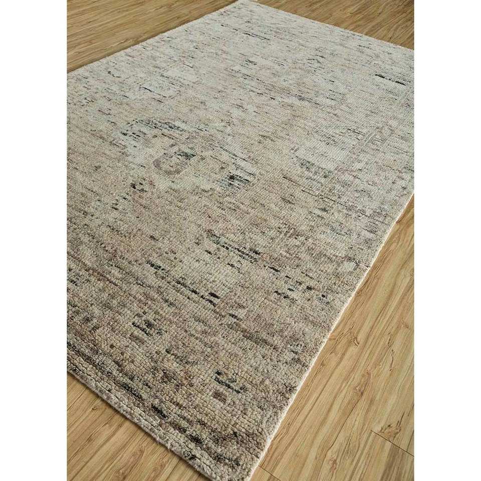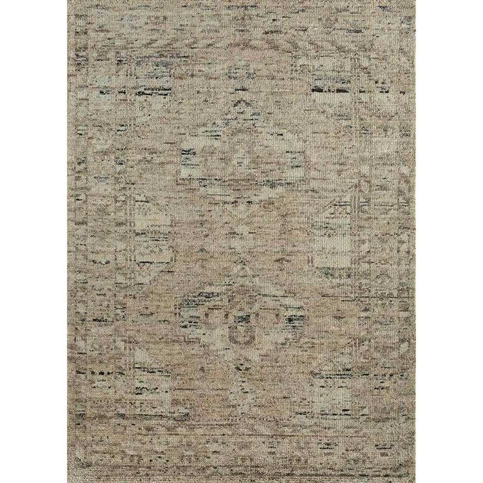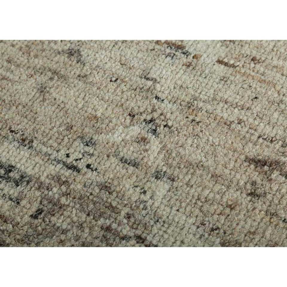 Alfombra de Lana Anudada a Mano, Color Tomillo Beige Marrón, Estilo Boho AKWL-1050, Patrón Abstracto de Medallón para Entrada, Pasillo, Sala de Estar, Hecha a Mano