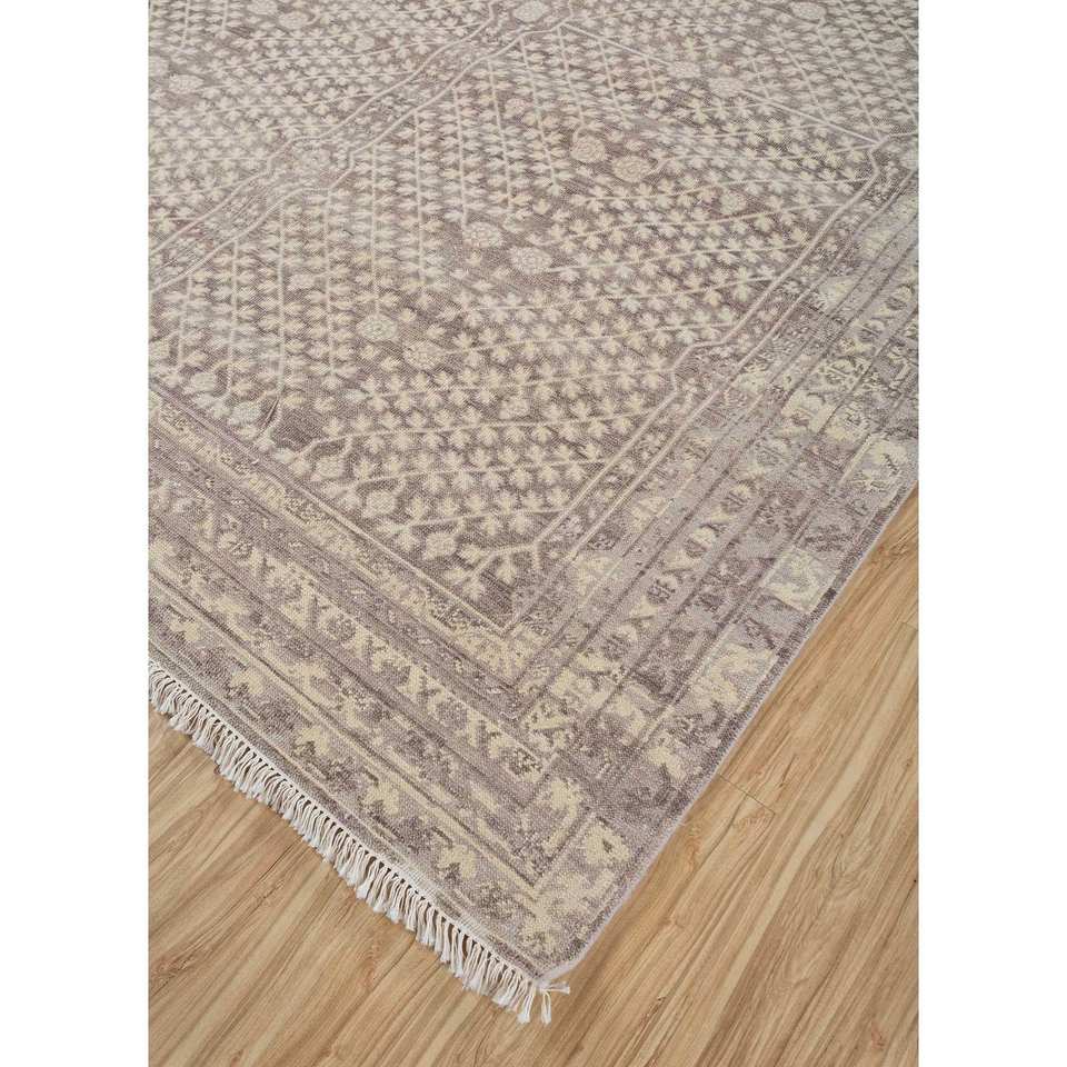 Alfombra de Lana Anudada a Mano, Color Gris Tomillo y Negro, Estilo Boho AKWL-1134 (Cs-03), para Uso Doméstico, Rectangular, para Pasillo, Sala de Estar, Dormitorio, Diseño Abstracto