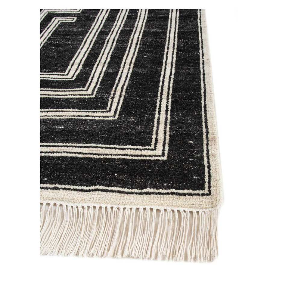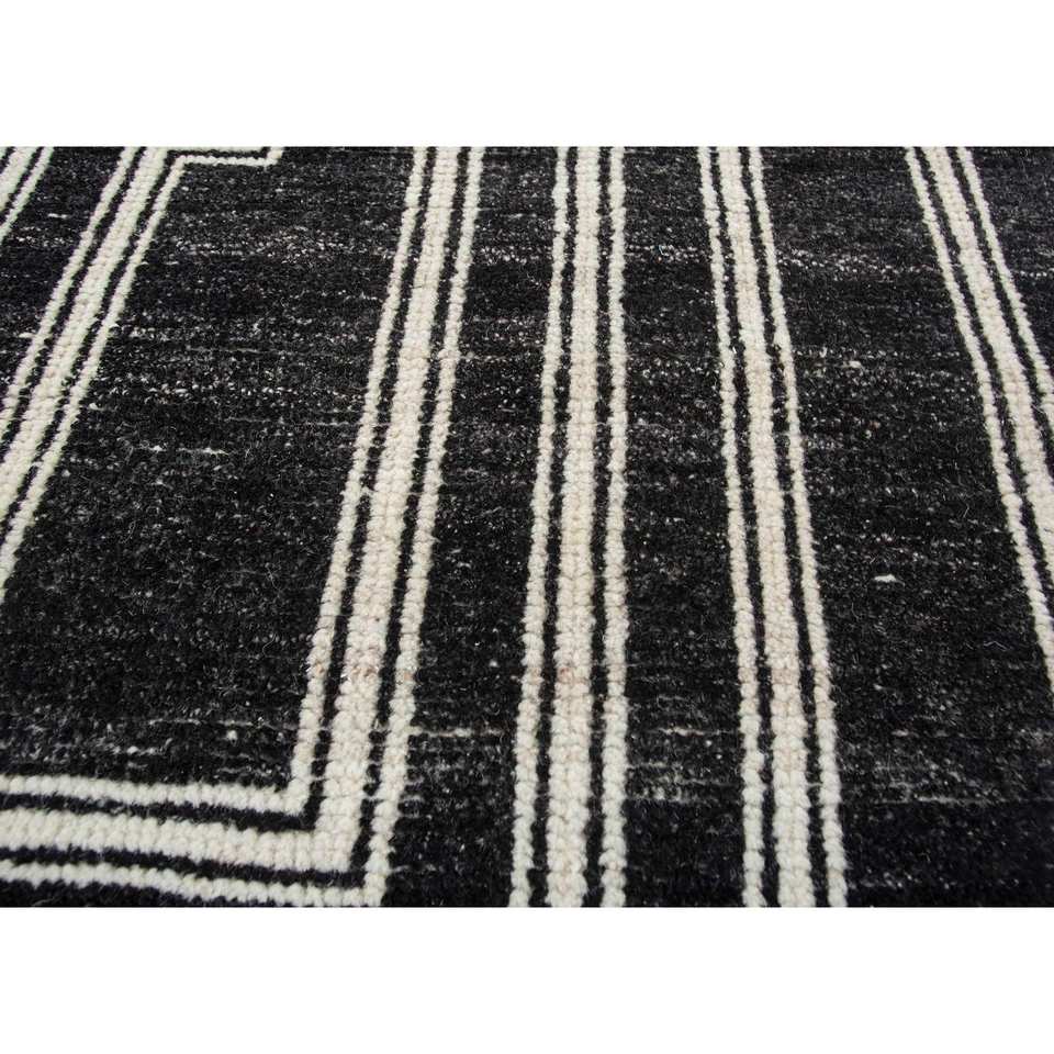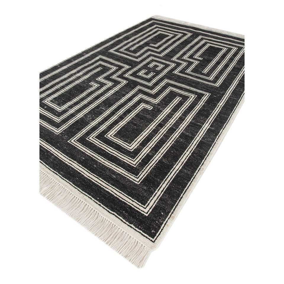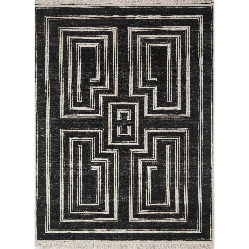 Alfombra de Lana Anudada a Mano, Color Gris Tomillo y Negro, con Patrón Geométrico y Abstracto, para el Hogar, Rectangular, para Pasillo o Sala de Estar -AKWL-1925