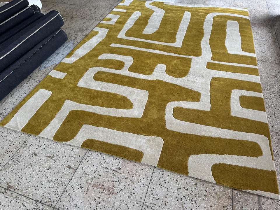 Alfombra Lavable de Lana y Seda Anudada a Mano con Patrón Geométrico Moderno, Pelo Alto Extra Grueso para Uso Doméstico y Comercial