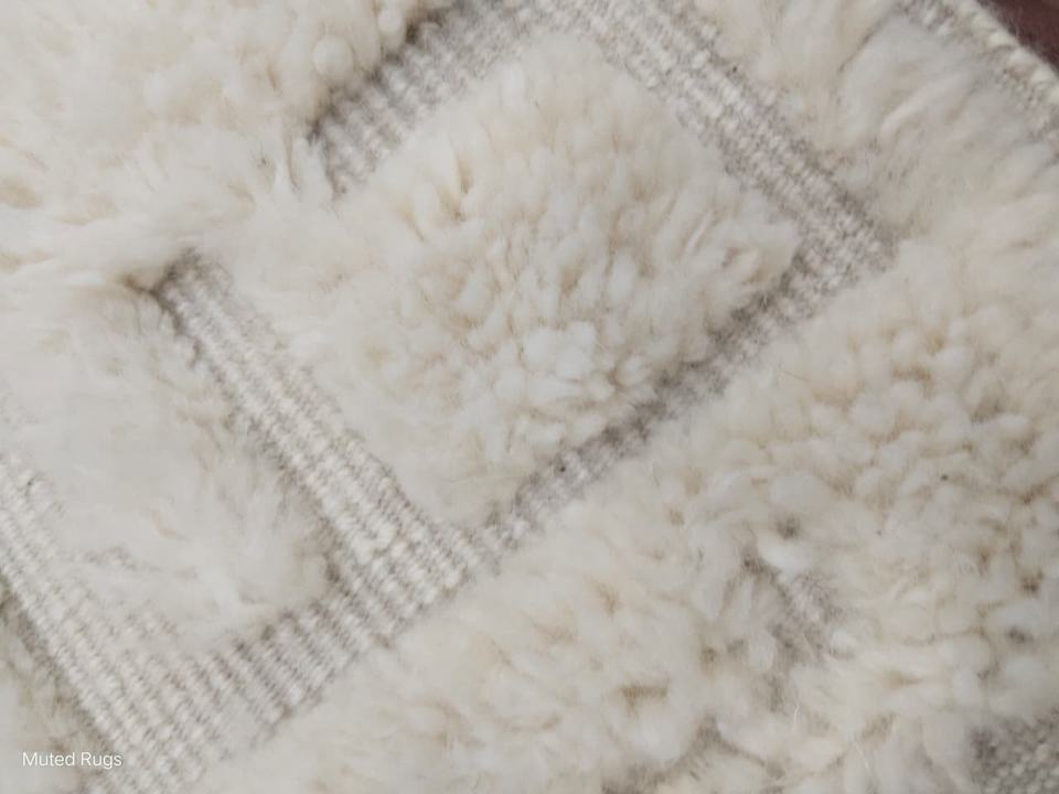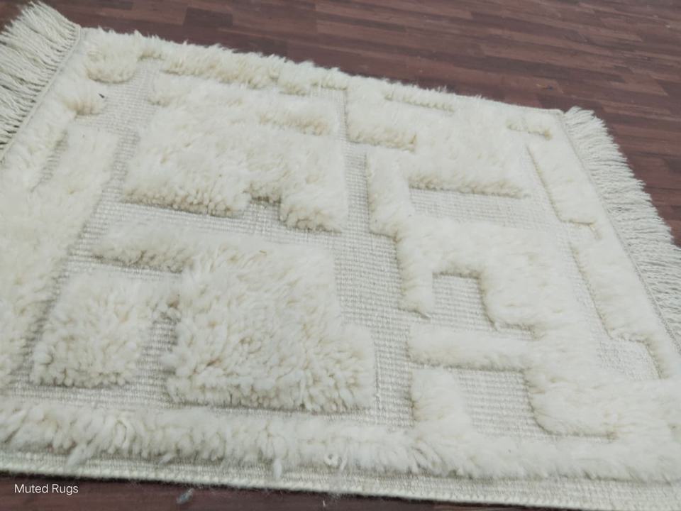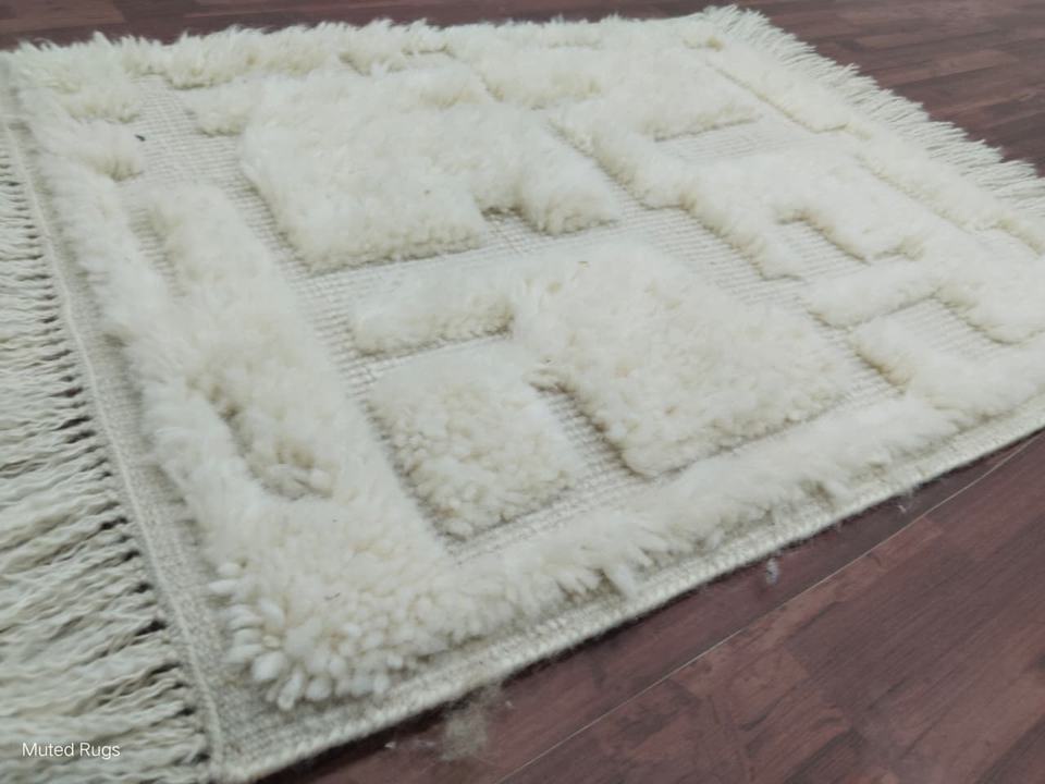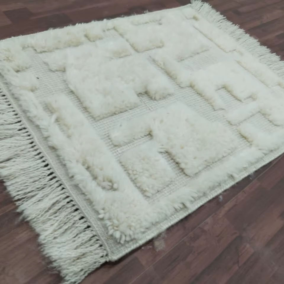 Alfombra texturizada de lana anudada a mano, color crema, corte geométrico de altura, minimalista moderno, alfombrilla de lana, decoración escandinava hecha a mano para el hogar