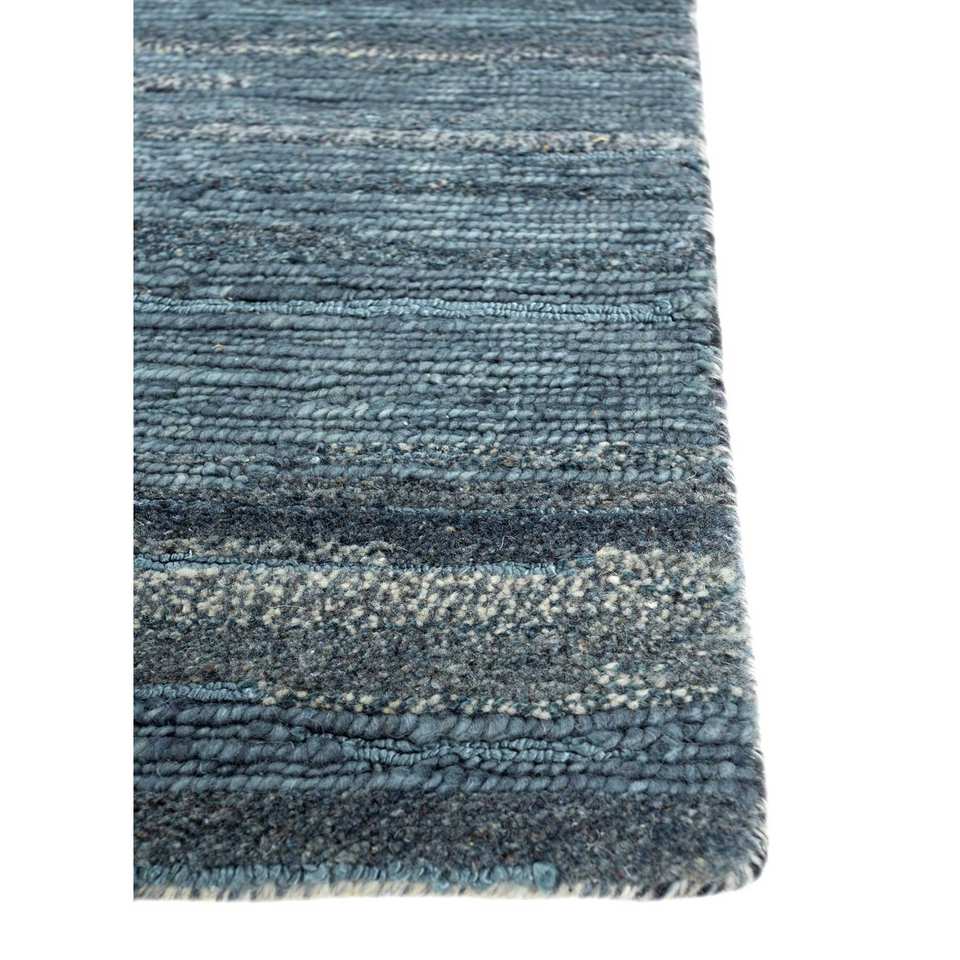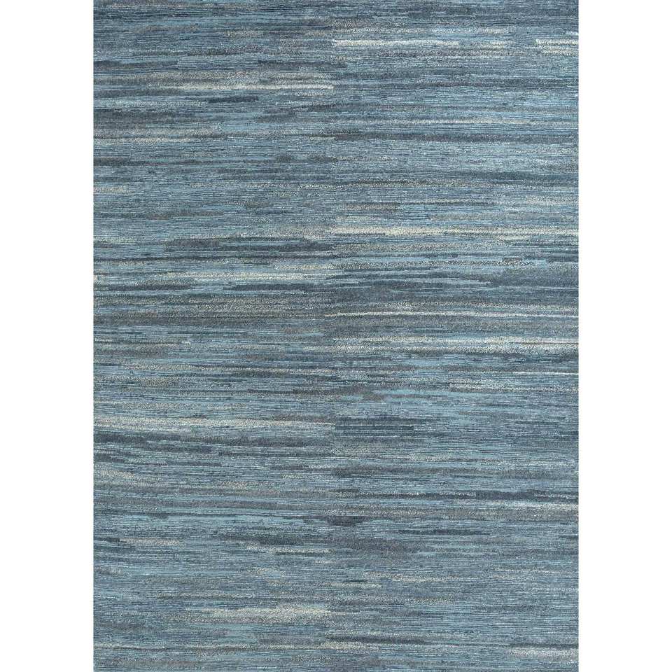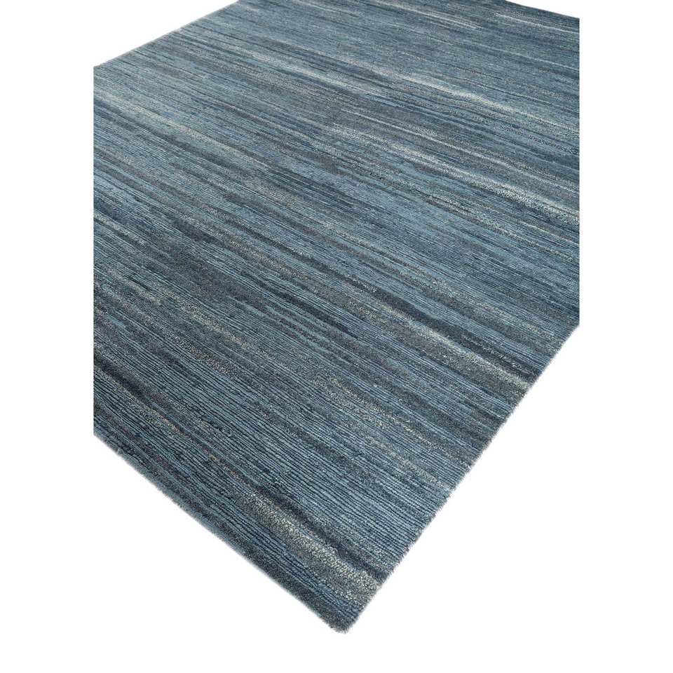 Alfombra de Lana y Viscosa Anudada a Mano, Diseño Rectangular con Rayas Azules, Estilo Patchwork y Abstracto para Sala de Estar, SIWV-26