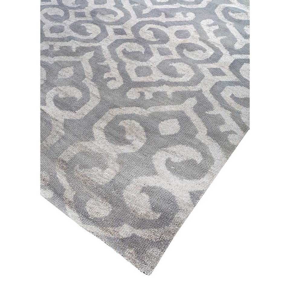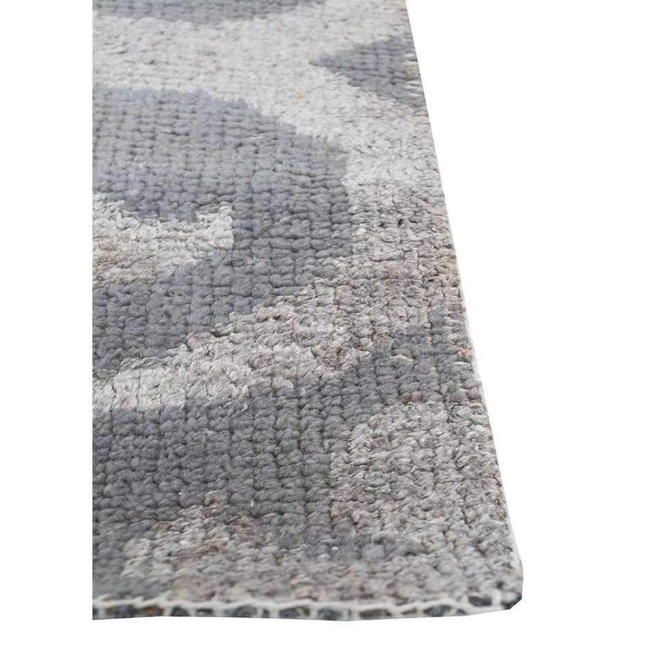 Alfombra Rectangular Tejida a Mano de Lana y Viscosa, Diseño Geométrico Abstracto en Gris y Negro, Modelo PKWV-16(OD) para el Hogar