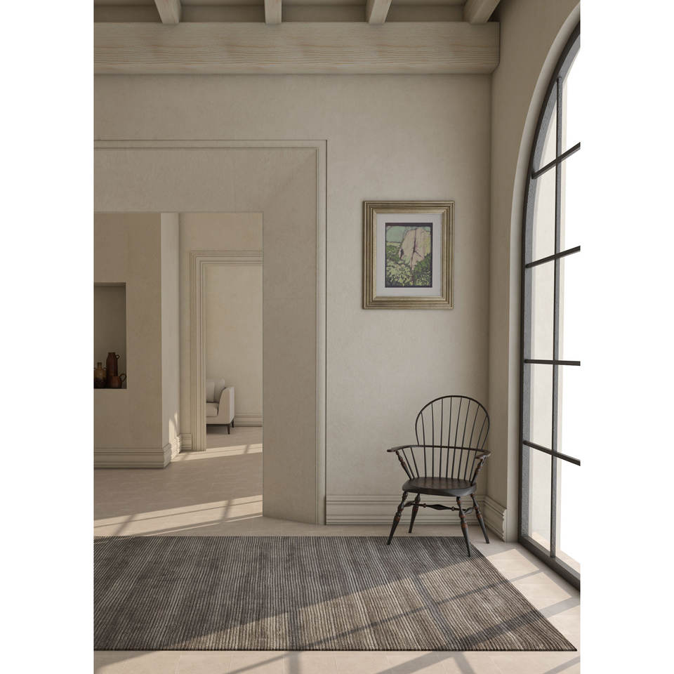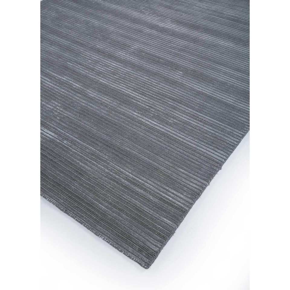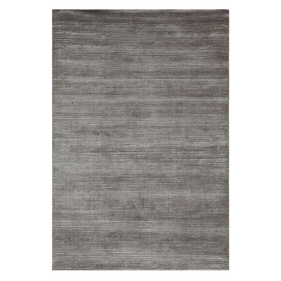 Alfombras Tejidas a Mano de Lana y Viscosa en Gris Base y Patrón de Rayas Negras Hwv-2000 para Uso Doméstico