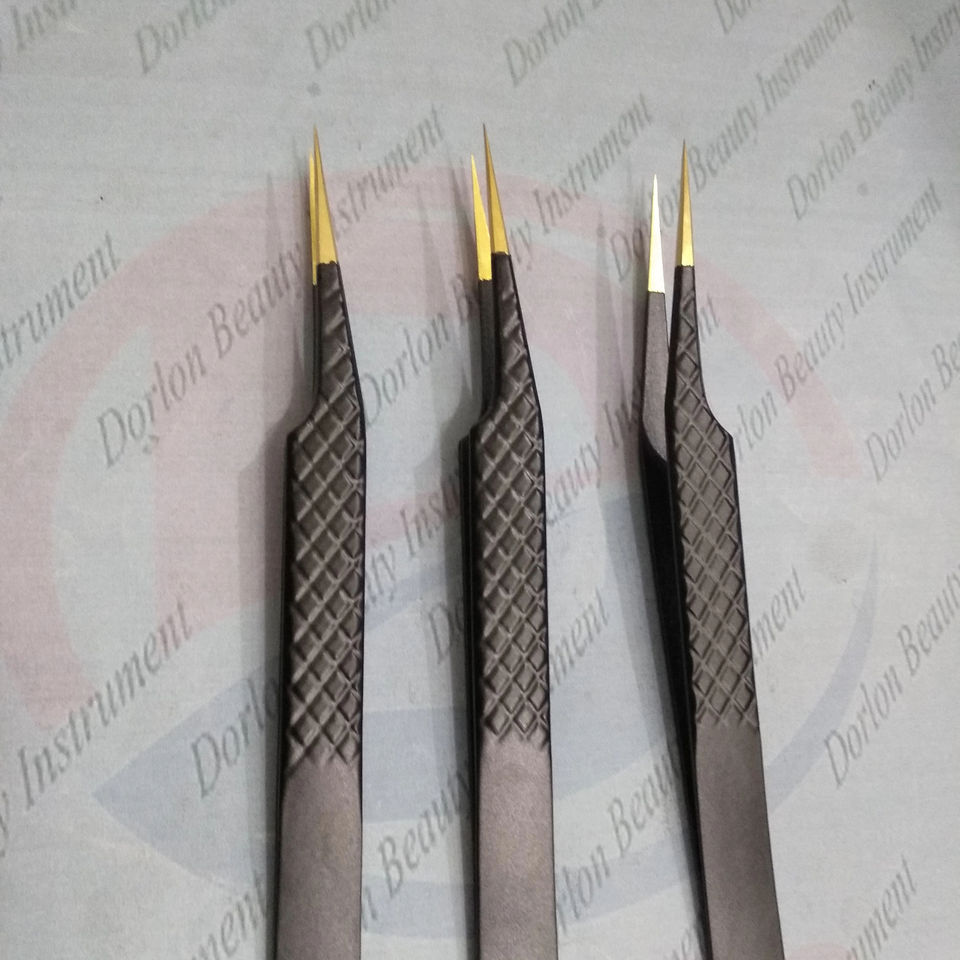 Pinzas de aislamiento de pestañas rectas Pro con agarre de diamante recubierto de Color negro hecho a mano