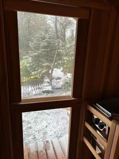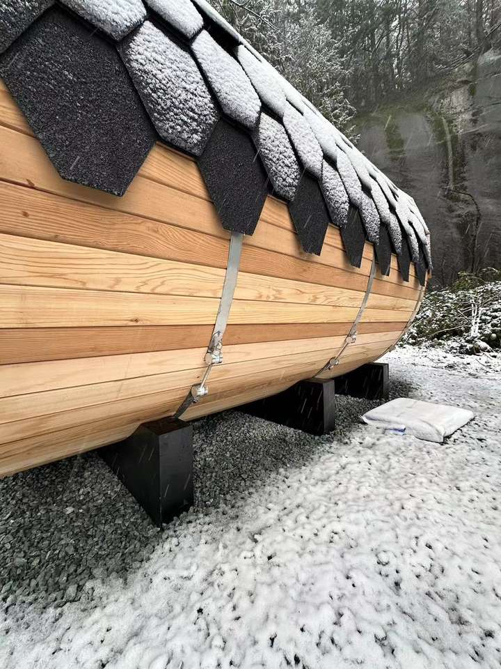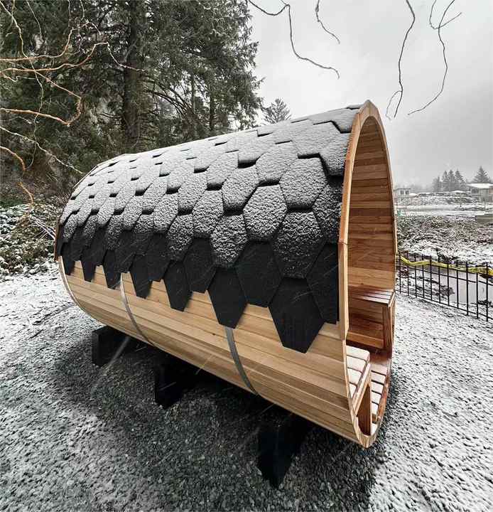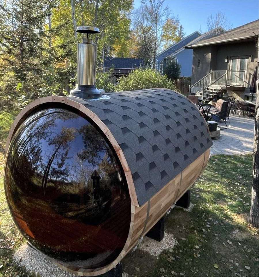 Sauna de barril de cedro rojo canadiense importada, hecha a mano, con calentador Harvia