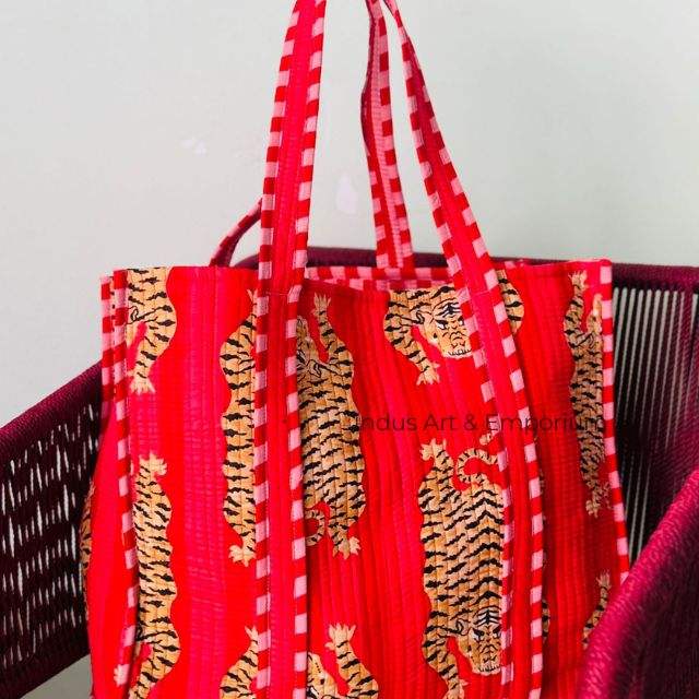 Bolso de compras con estampado de bloques florales de algodón hecho a mano, bolso de compras grande, bolso de mano de algodón, regalos asequibles para mujer para ella