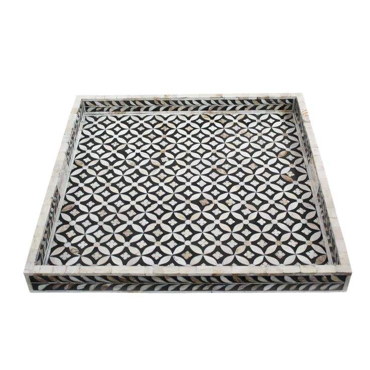 Bandeja de diseño artesanal con incrustaciones de nácar, bandeja de servir de nácar, bandeja de MDF, bandejas decorativas, bandeja de resina al mejor precio de fábrica.