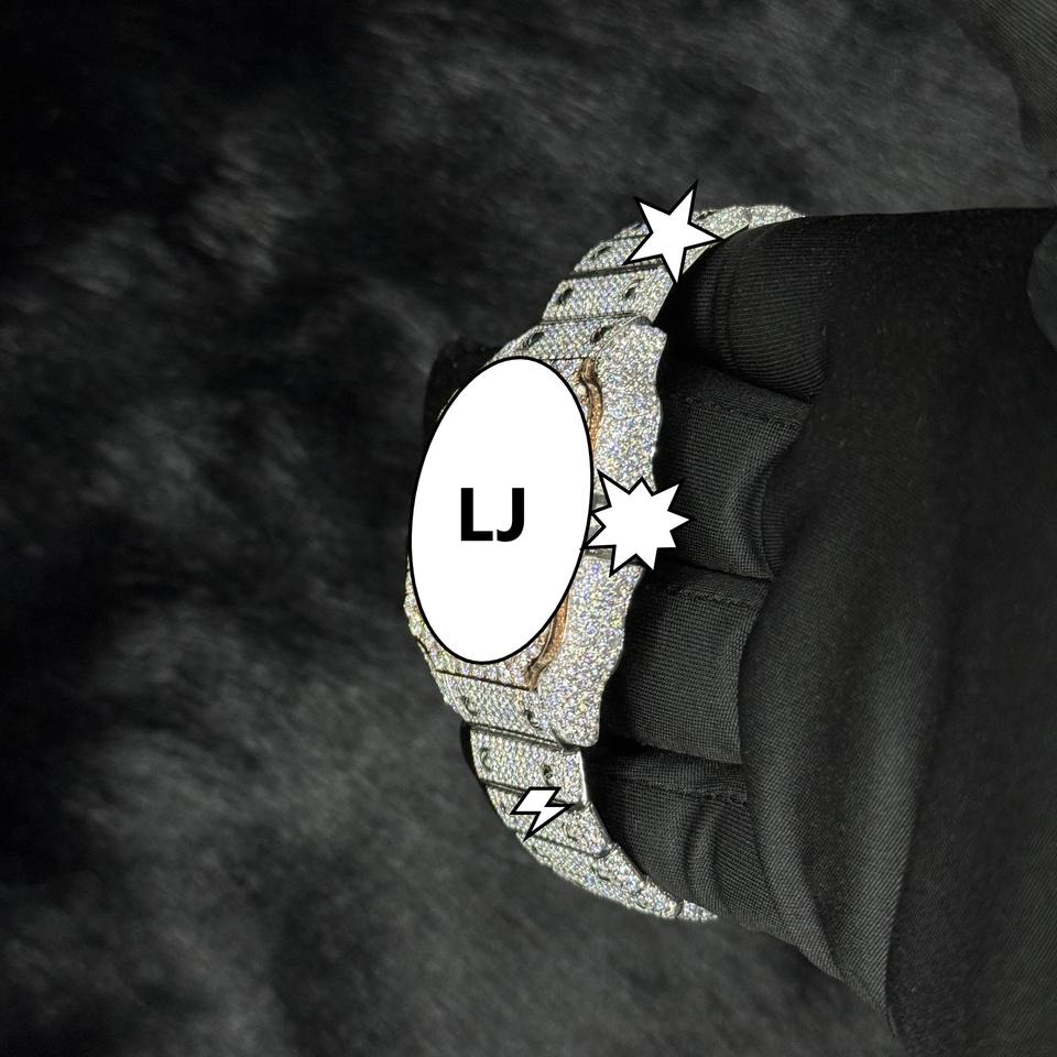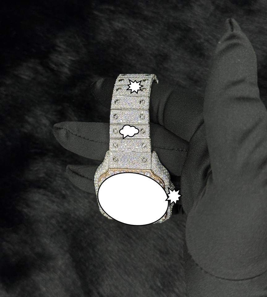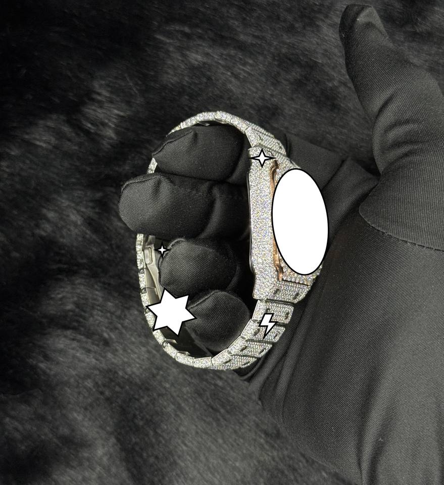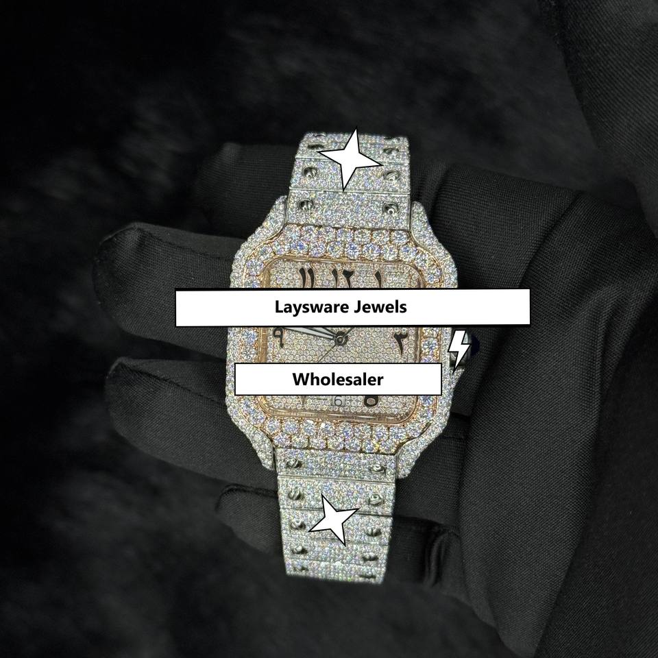 Reloj de Lujo para Uso Diario, Hecho a Mano, de Acero Inoxidable de Alta Calidad, con Corte Redondo de Moissanita, Completamente Adornado, con Movimiento Automático y Esfera Analógica