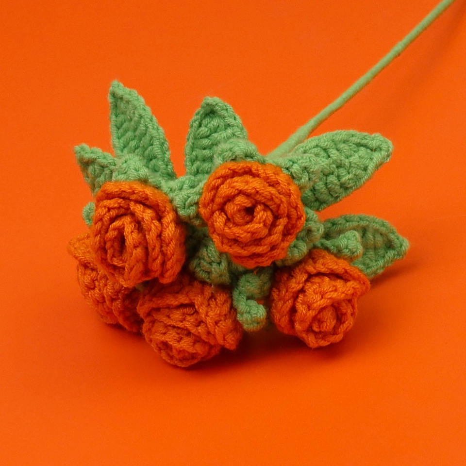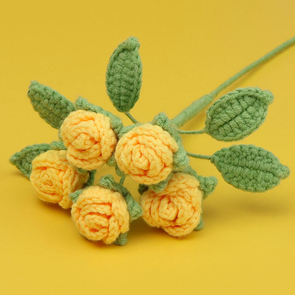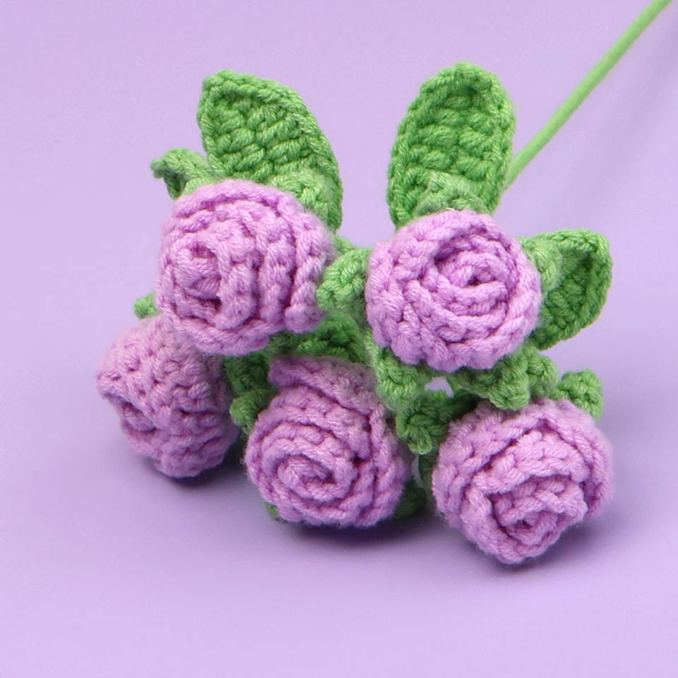 Flores de Hilo de Lana Tejidas a Mano, Flores de Rosa de Crochet Artificiales para Ramos de Bricolaje
