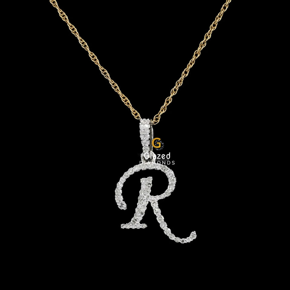 Colgante de Hip Hop con letra inicial personalizada totalmente helada, adornado con diamantes redondos brillantes cultivados en laboratorio, VVs, Plata de Ley 925