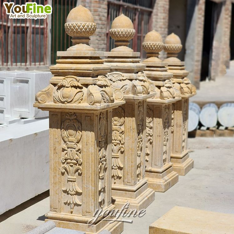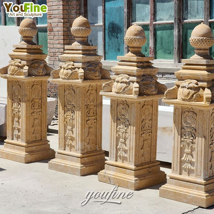 Decoración de Jardín Exterior Hecha a Mano, Hermosas Fotos de Diseño de Pilares de Puerta Principal de Mármol
