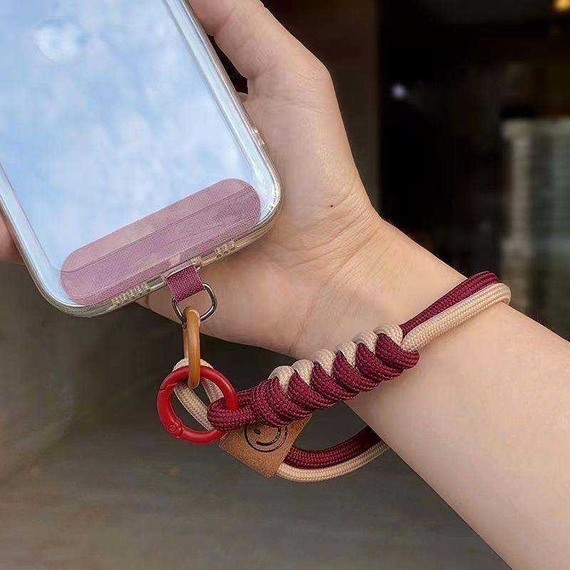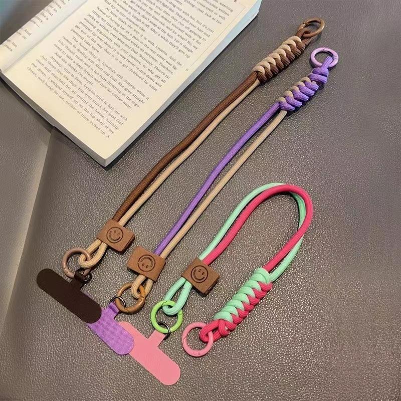 Cordón de poliéster de uso universal hecho a mano, correa de mano para teléfono móvil, correa de cuerda de longitud corta con soporte de teléfono de plástico