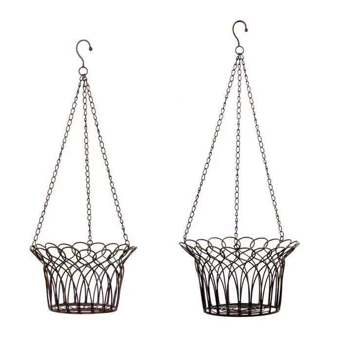 Macetas colgantes hechas a mano con revestimiento negro, de metal, alta calidad, para decoración del hogar